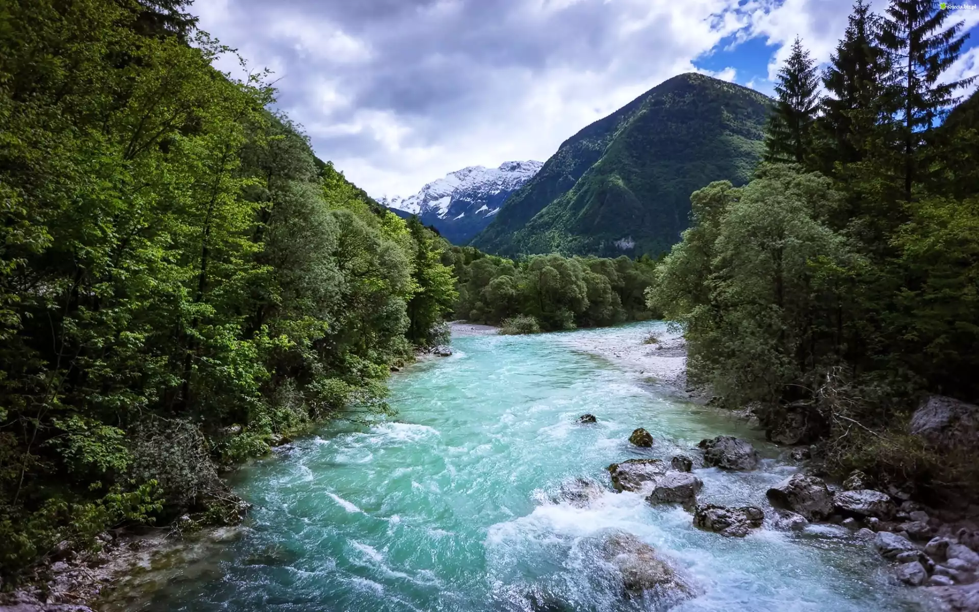 Zdjęcie Rzeka, Góry, Kamienie, Las