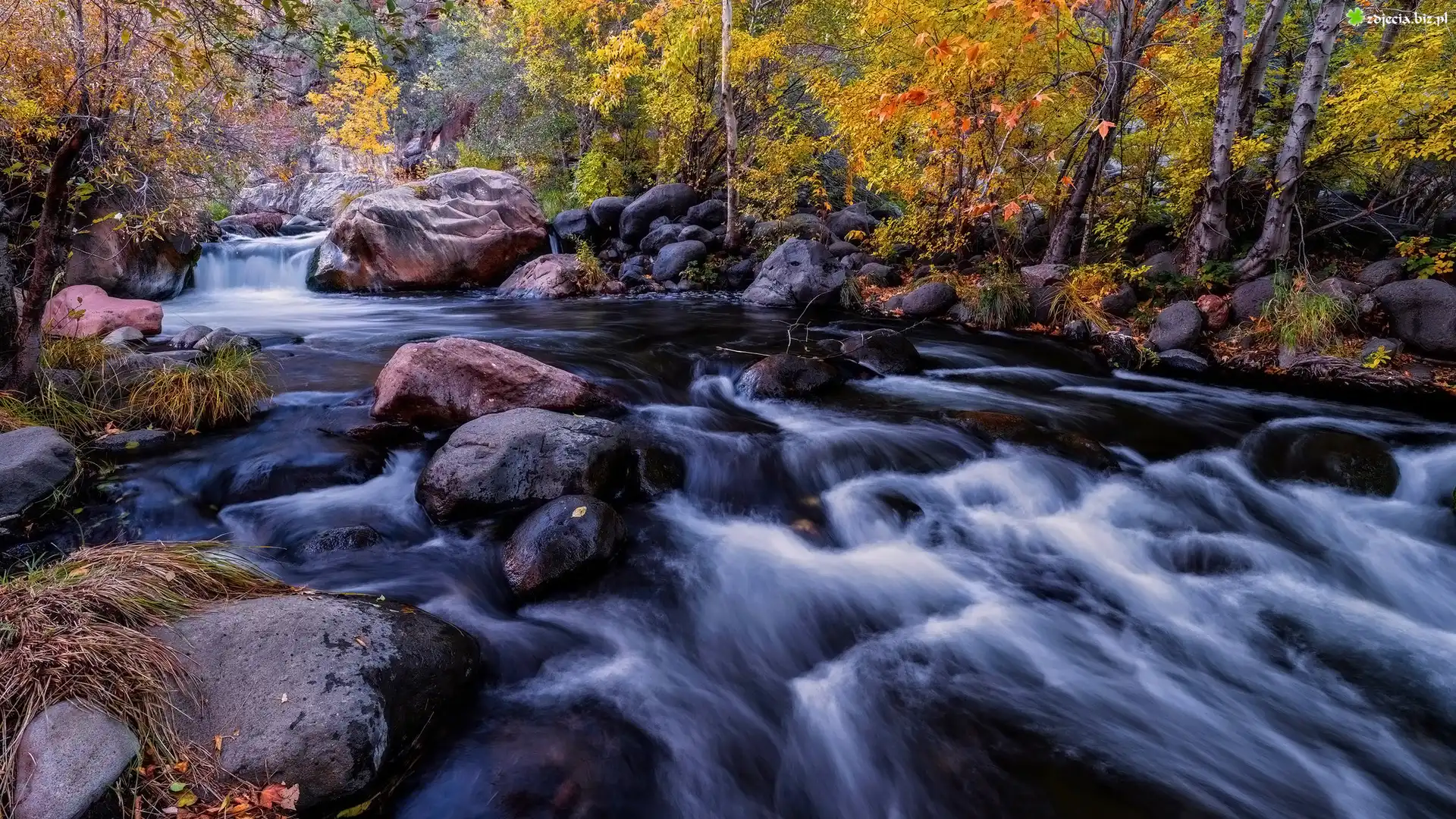 Zdjęcie Jesień, Rzeka, Kamienie, Drzewa, Las