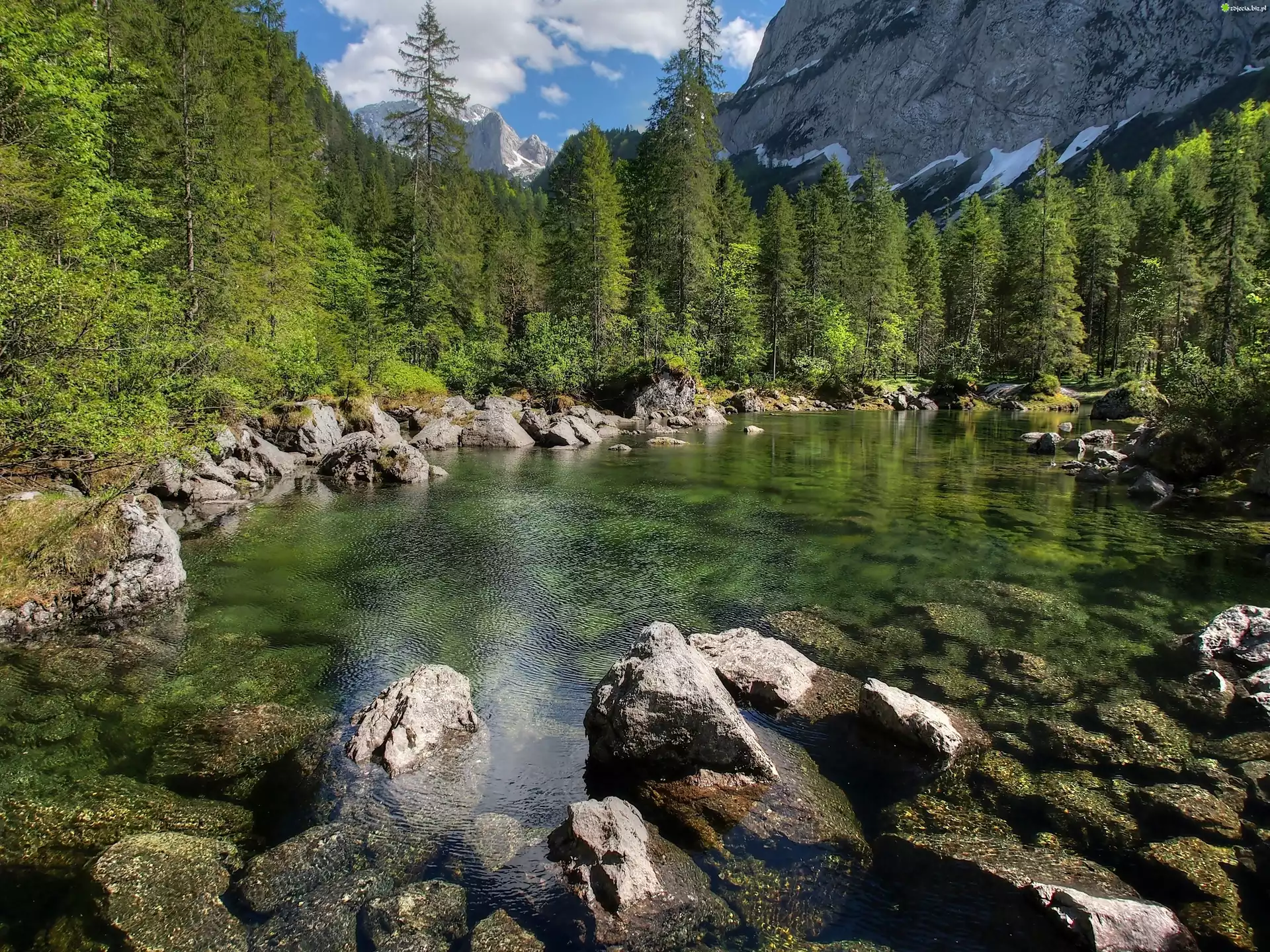 Zdjęcie, Rzeka, Las, Kamienie, Góry