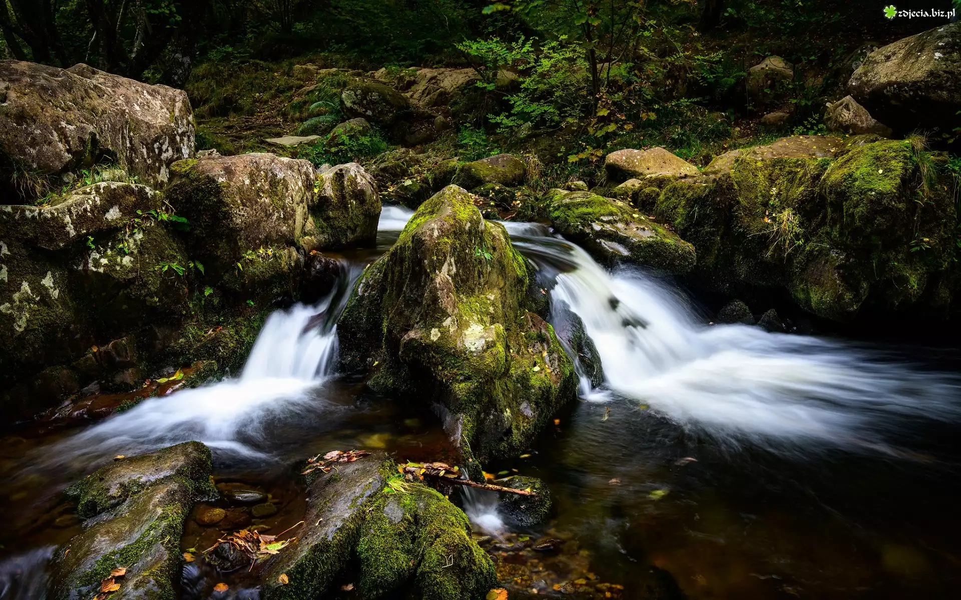 Zdjęcie Rzeka, Omszałe, Kamienie, Las