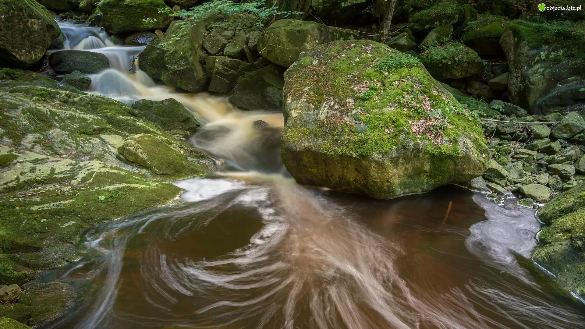Zdjęcie Rzeka, Potok, Kamienie, Mech