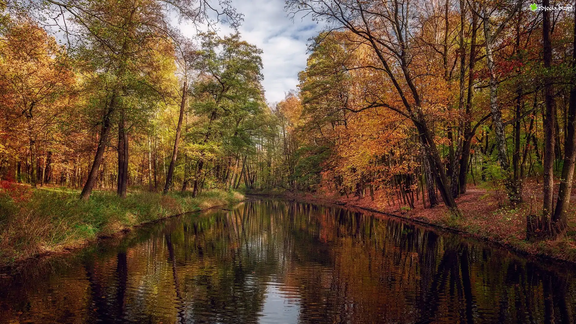 Zdjęcie, Jesień, Rzeka, Kolorowe, Drzewa, Park