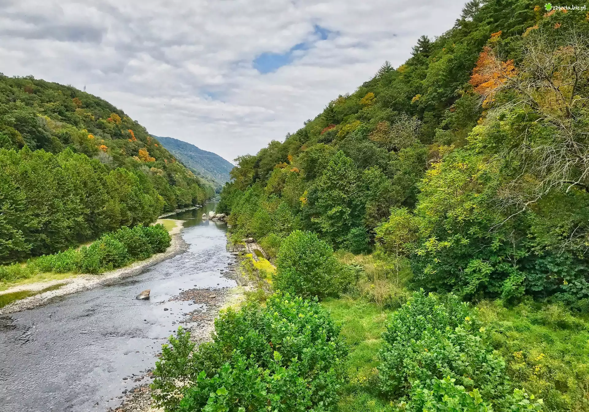 Zdjęcie, Lasy, Rzeka, Wzgórza
