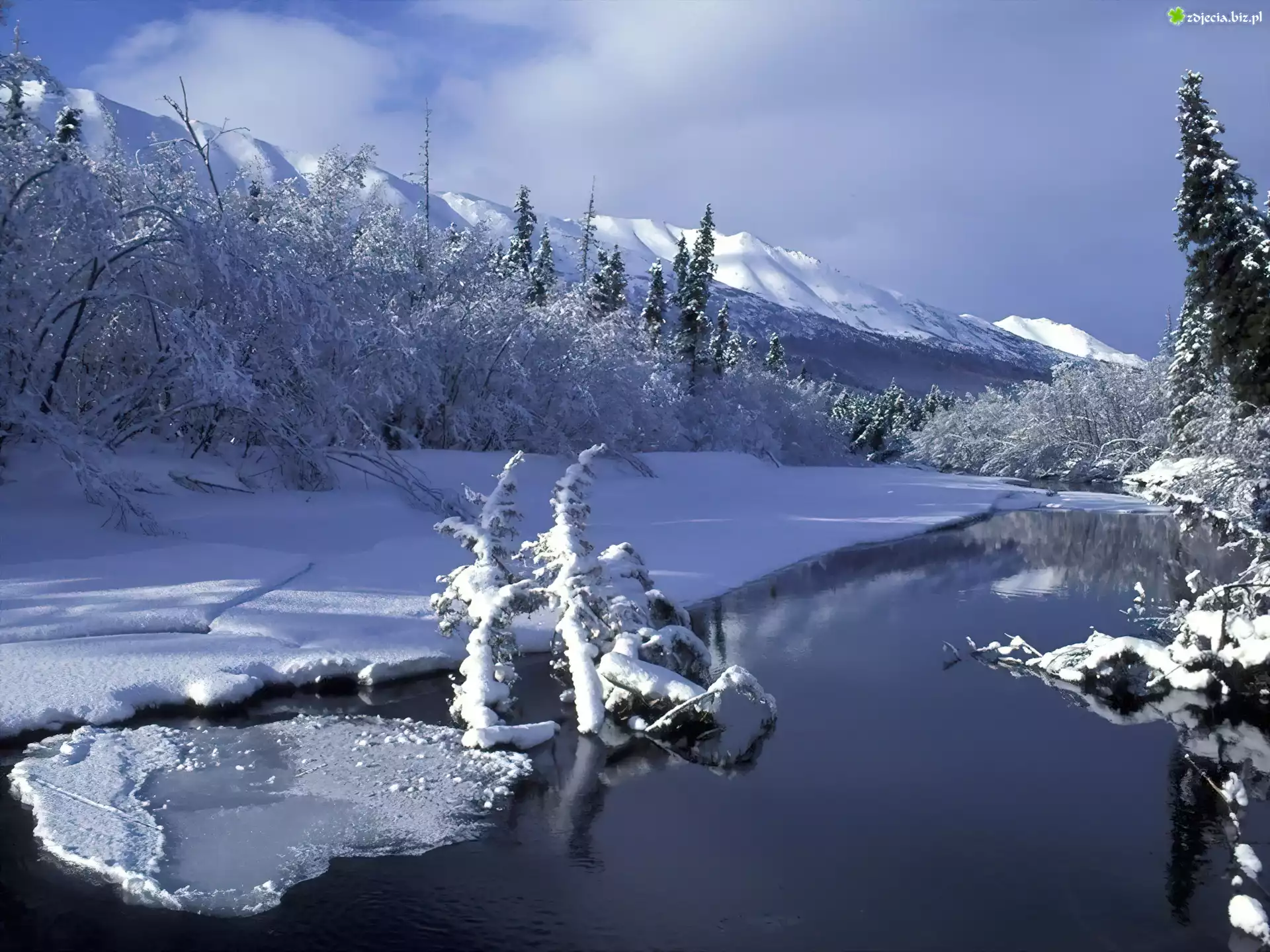 Zdjęcie Rzeka, Śnieg, Masyw, Górski