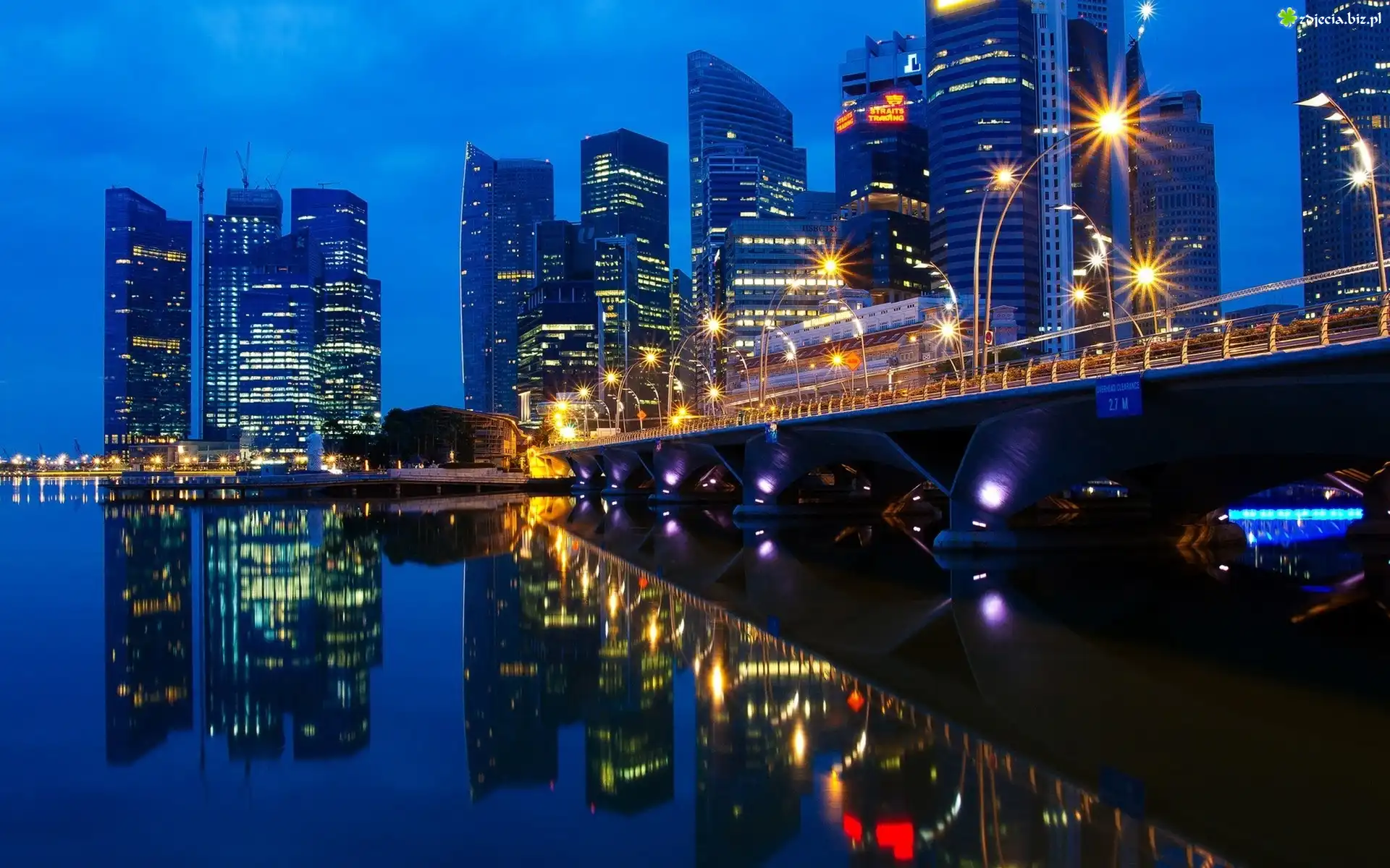 Zdjęcie Rzeka, Most, Wieżowce, Kuala Lumpur, Miasto, Nocą