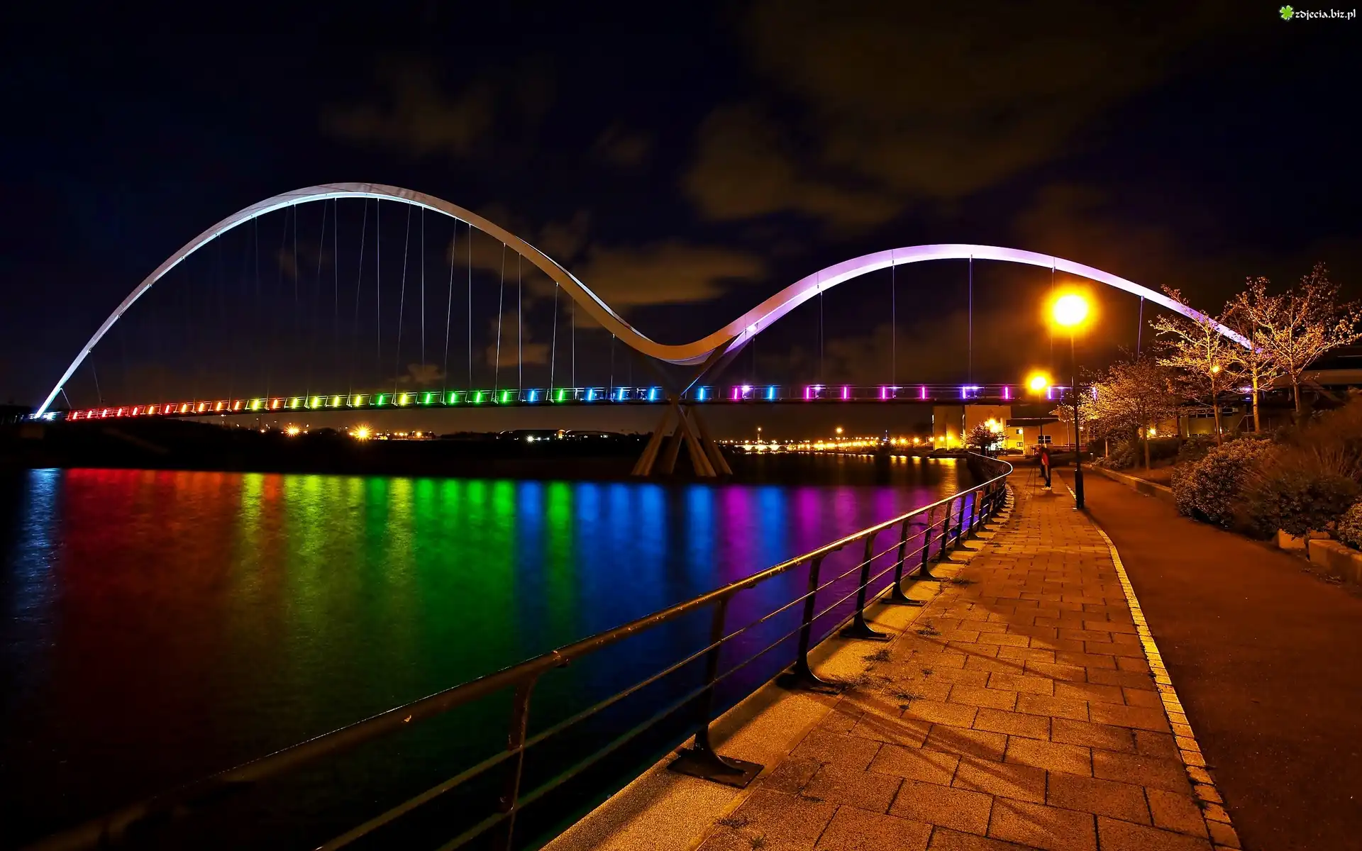 Zdjęcie Rzeka, Oświetlony, Most, Bulwar