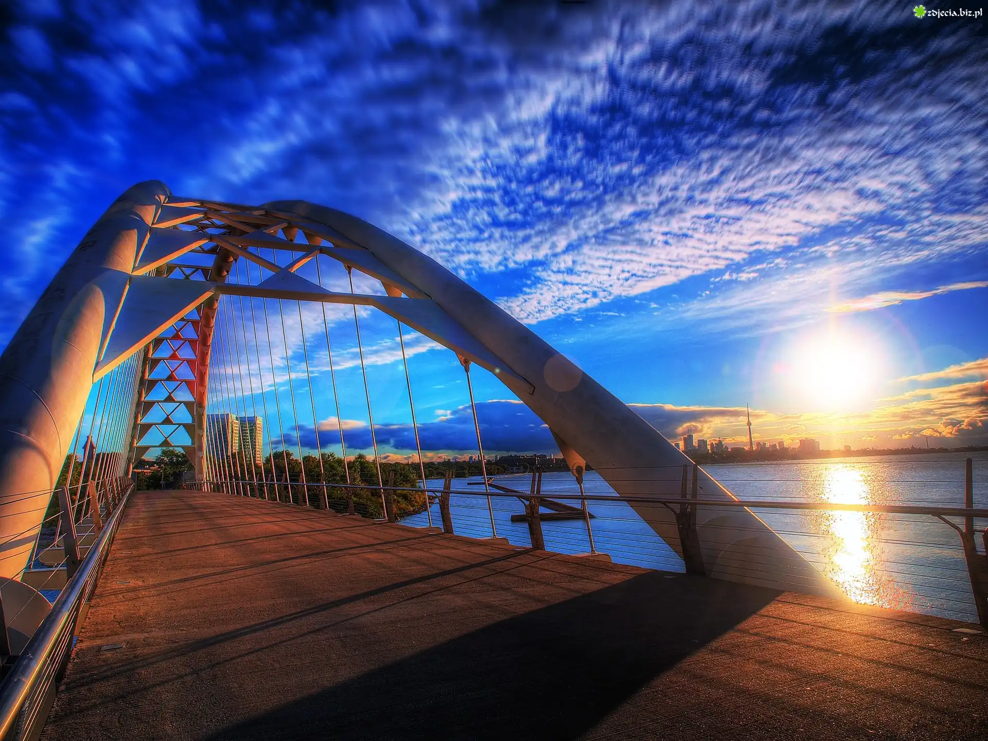 Zdjęcie Most, Rzeka, Słońce, Toronto, Kanada