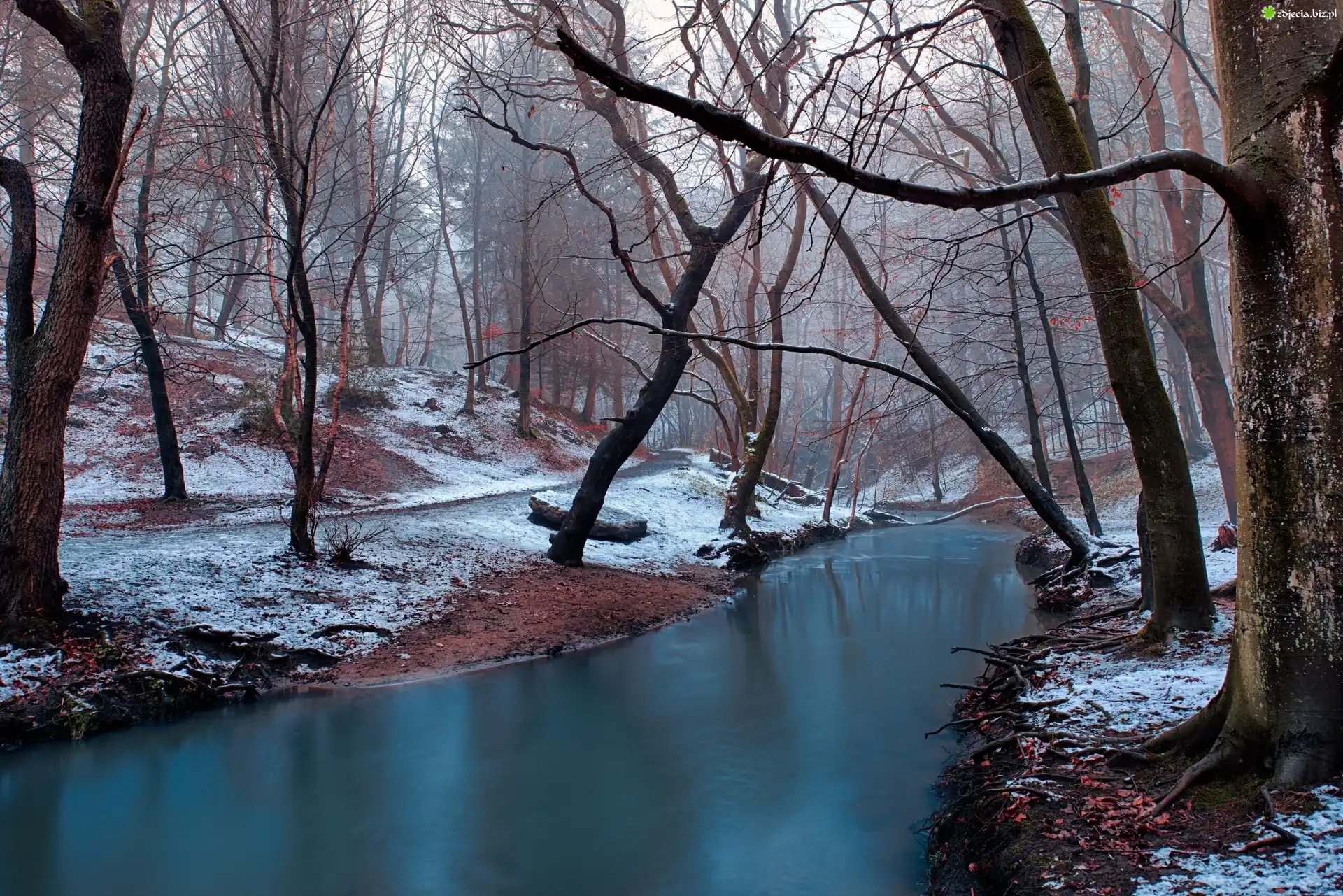 Zdjęcie Rzeka, Zima, Śnieg, Drzewa