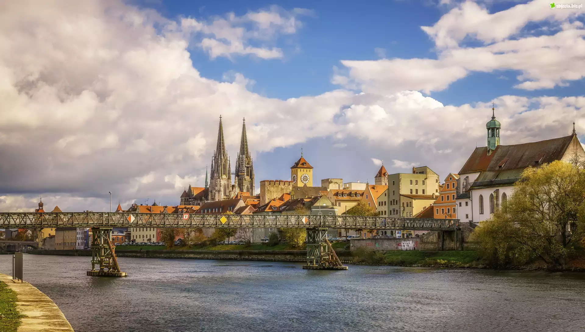 Zdjęcie Niemcy, Bawaria, Regensburg, Miasto Ratyzbona, Rzeka Dunaj, Katedra Św. Piotra, Most, Kościół |
