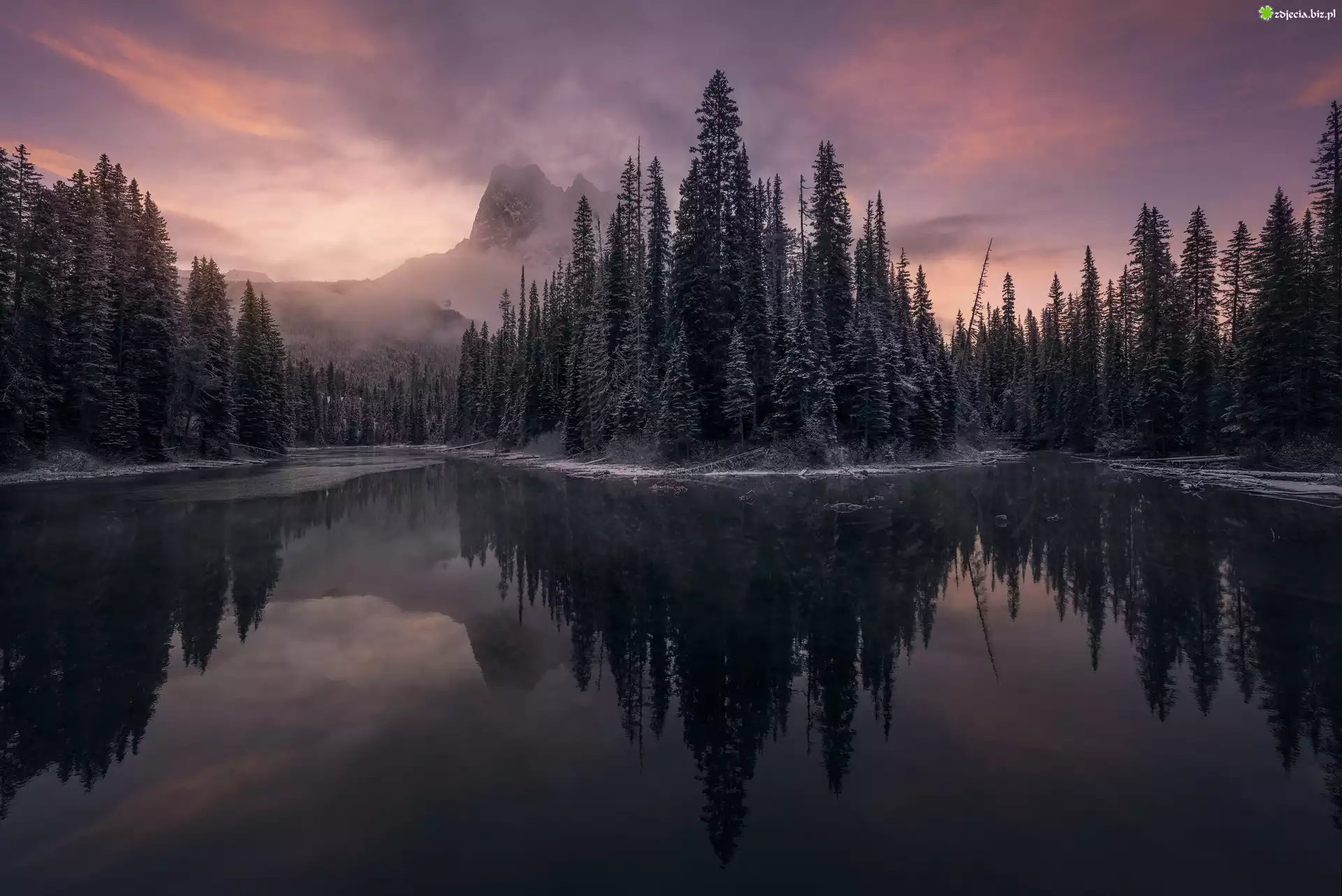 Zdjęcie Rzeka, Las, Drzewa, Odbicie, Góry