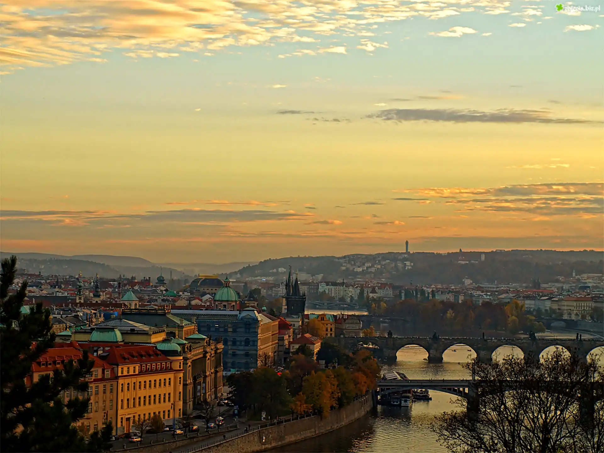 Zdjęcie Rzeka, Most, Niebo, Panorama, Miasta