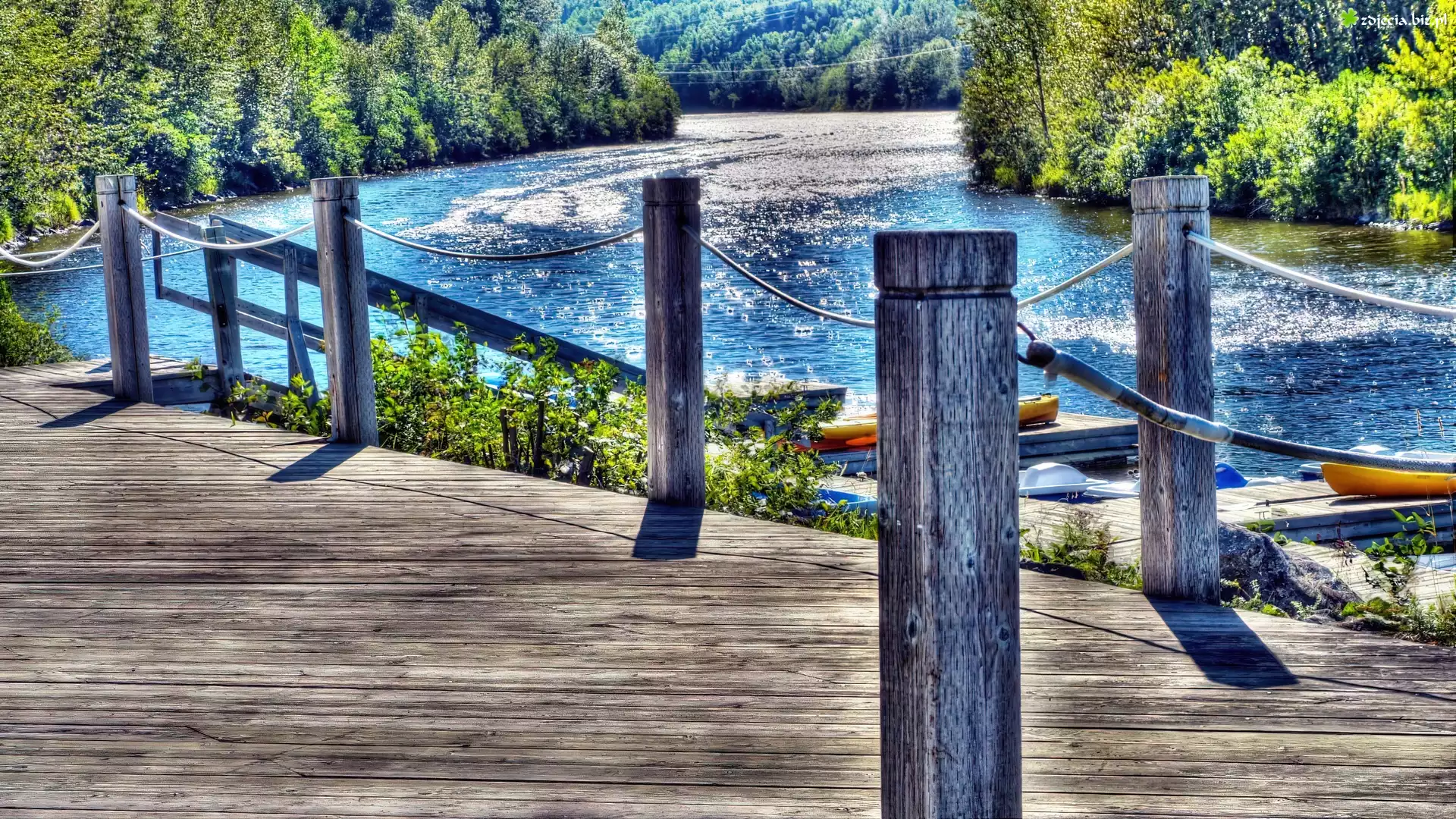 Zdjęcie Rzeka, Las, Pomost, Łódki