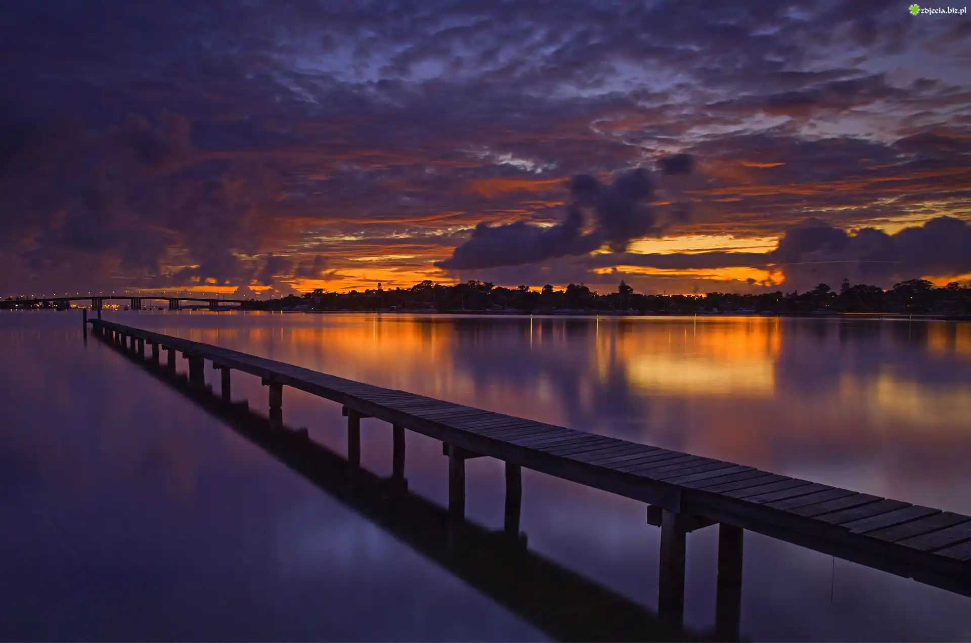 Zdjęcie Rzeka, Most, Zachód, Słońca, Pomost, Chmury
