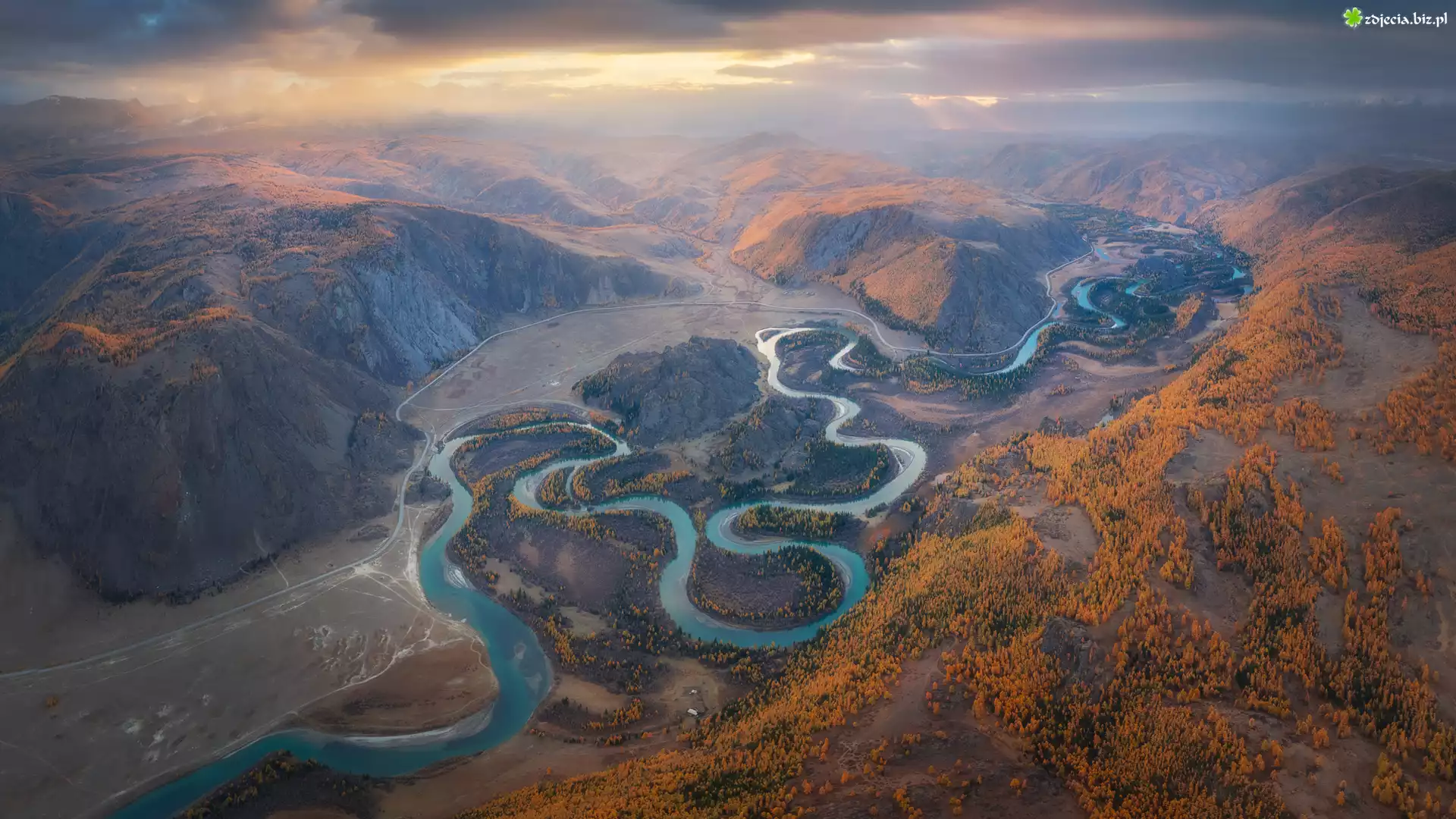 Zdjęcie Rzeka, Zakole, Góra, Rzeka, Z lotu ptaka, Ałtaj, Rosja