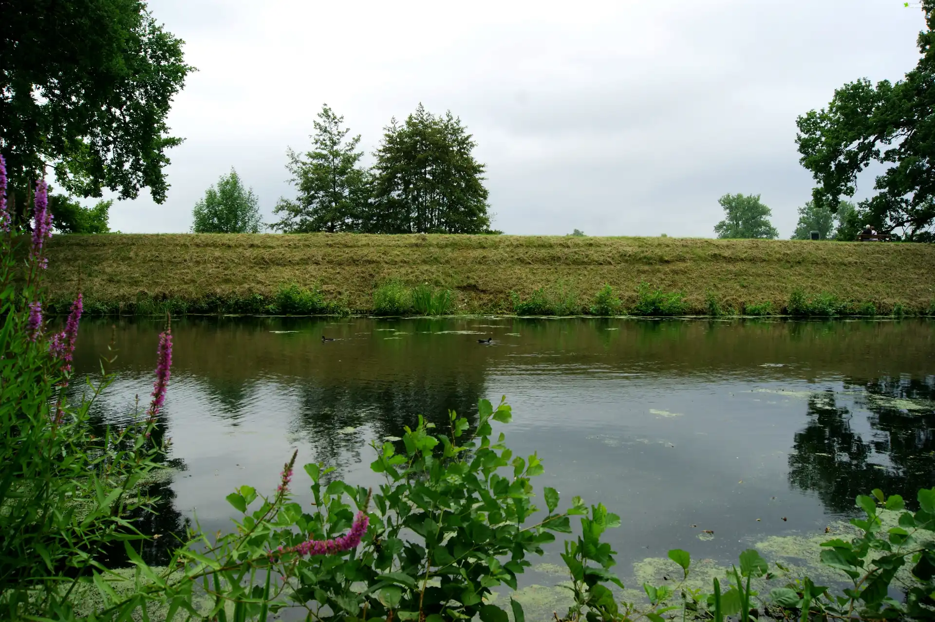 Zdjęcie, Rzeka, Rośliny, Purpurowe, Kwiaty