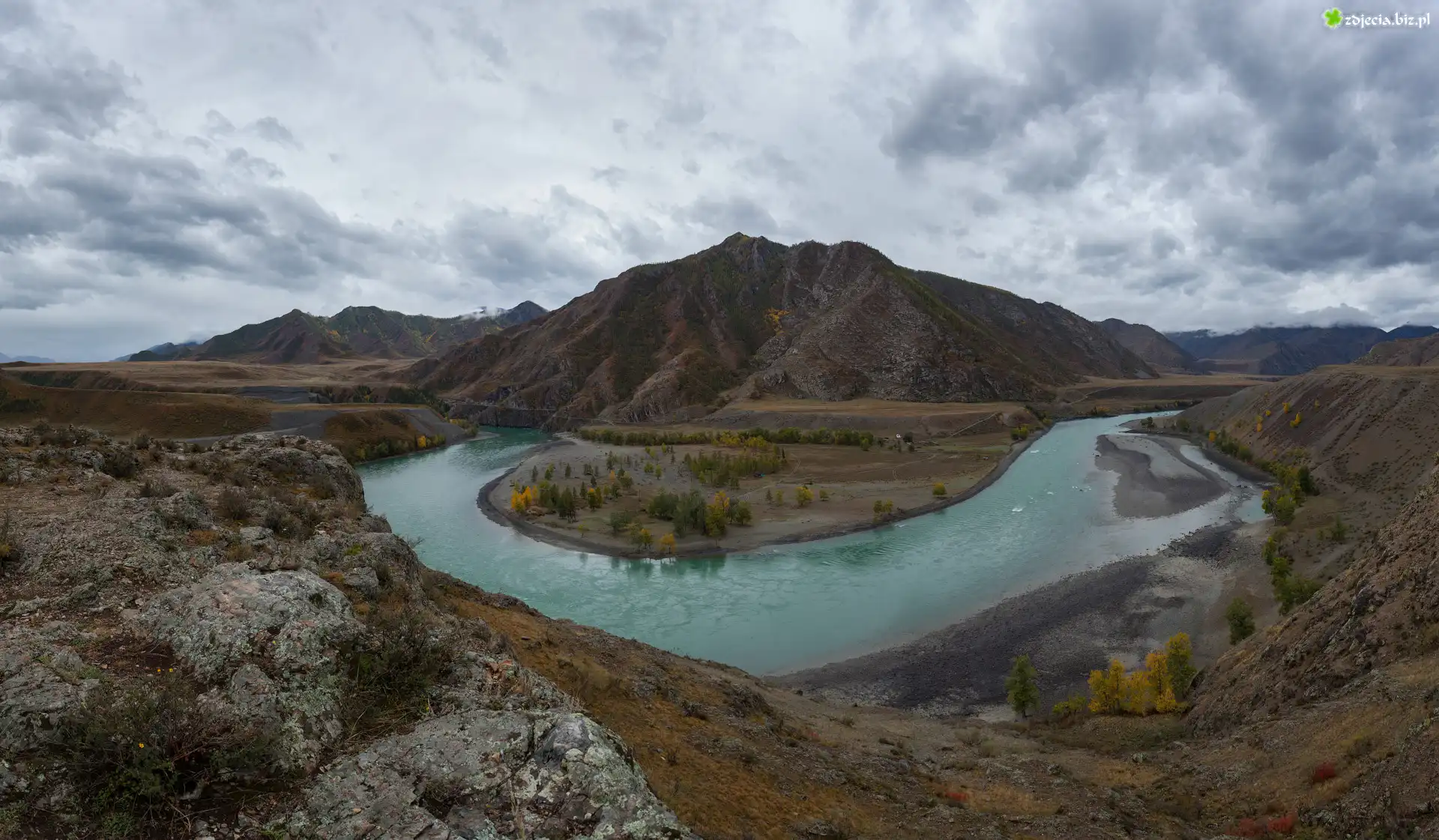 Zdjęcie Rzeka, Góry, Skały, Drzewa