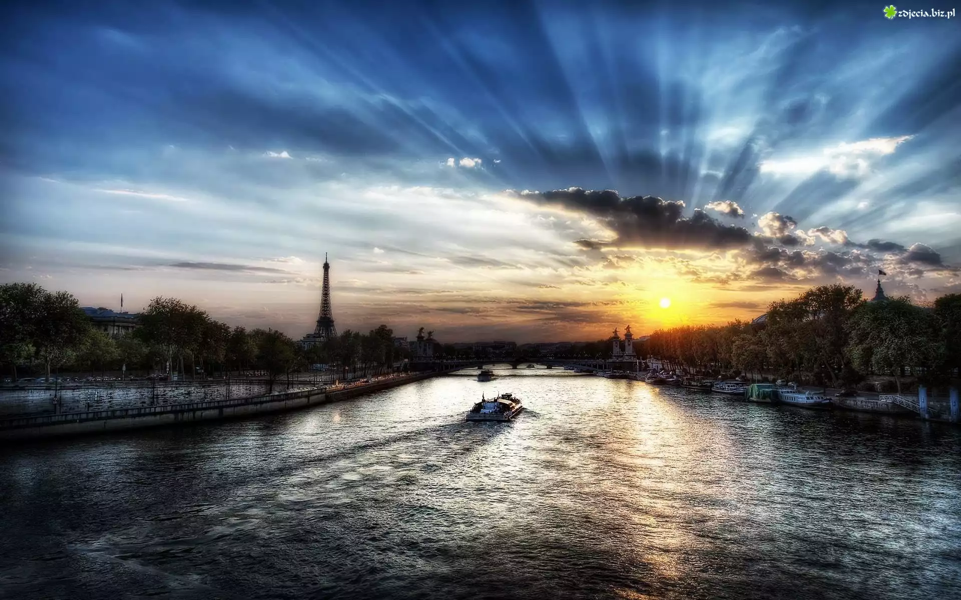 Zdjęcie Chmury, Rzeka, Francja, Paryż, Wieża Eiffla, Zachód słońca