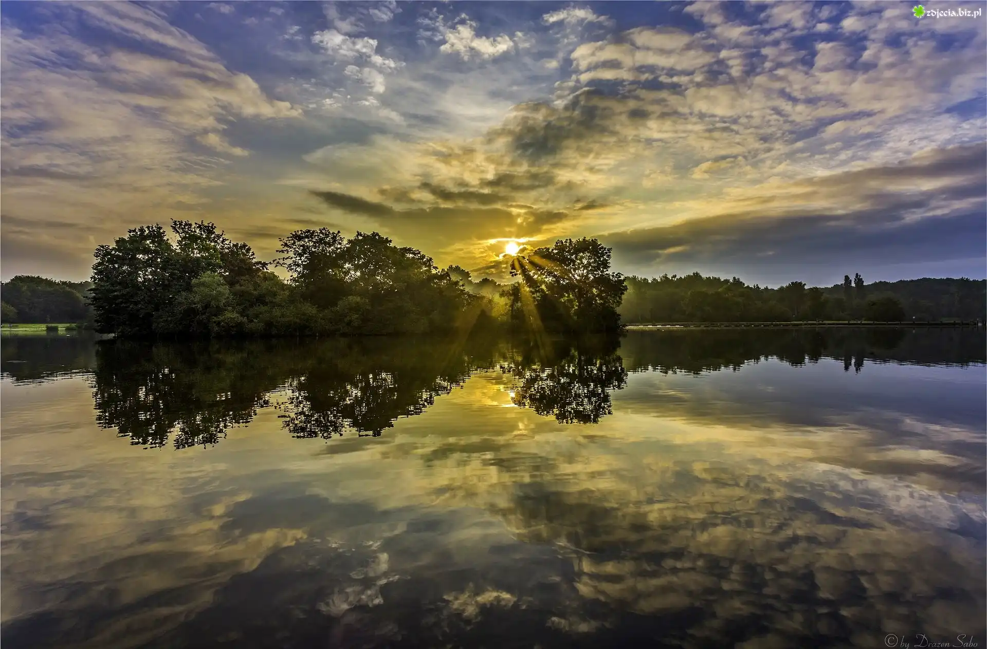 Zdjęcie Rzeka, Drzewa, Promienie, Słońca, Odbicie