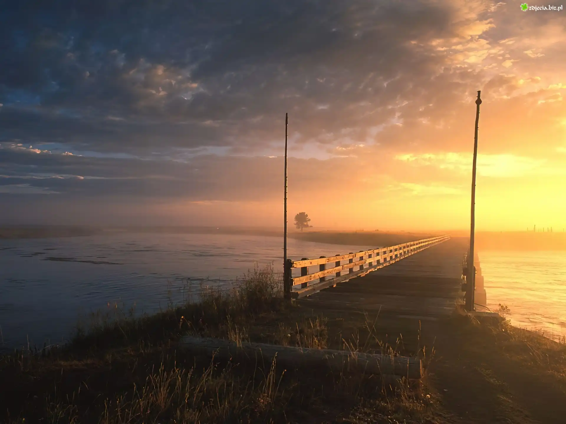 Zdjęcie Rzeka, Zachód Słońca, Mostek