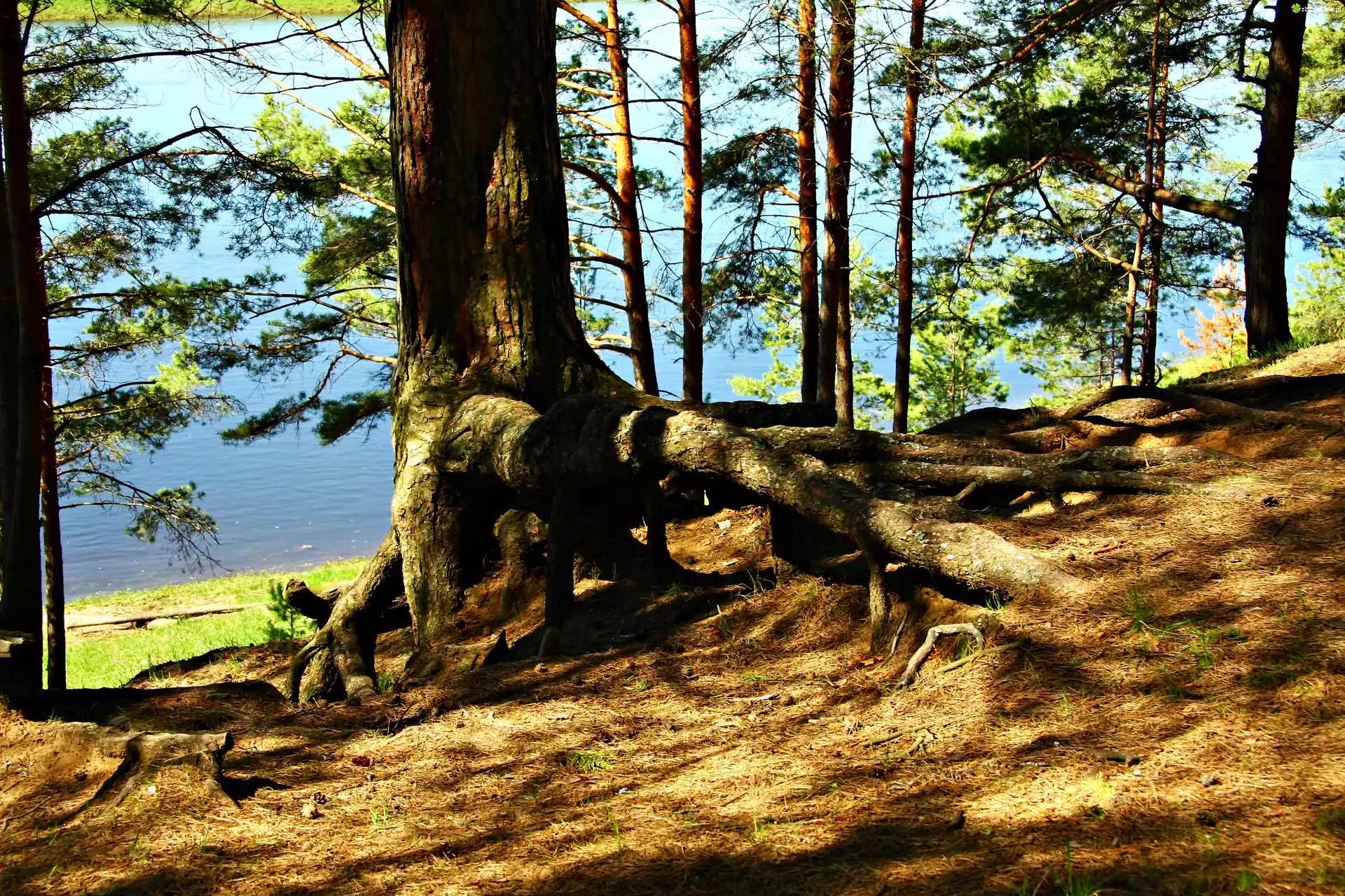Zdjęcie Rzeka, Brzeg, Drzewa, Sosna, Korzenie