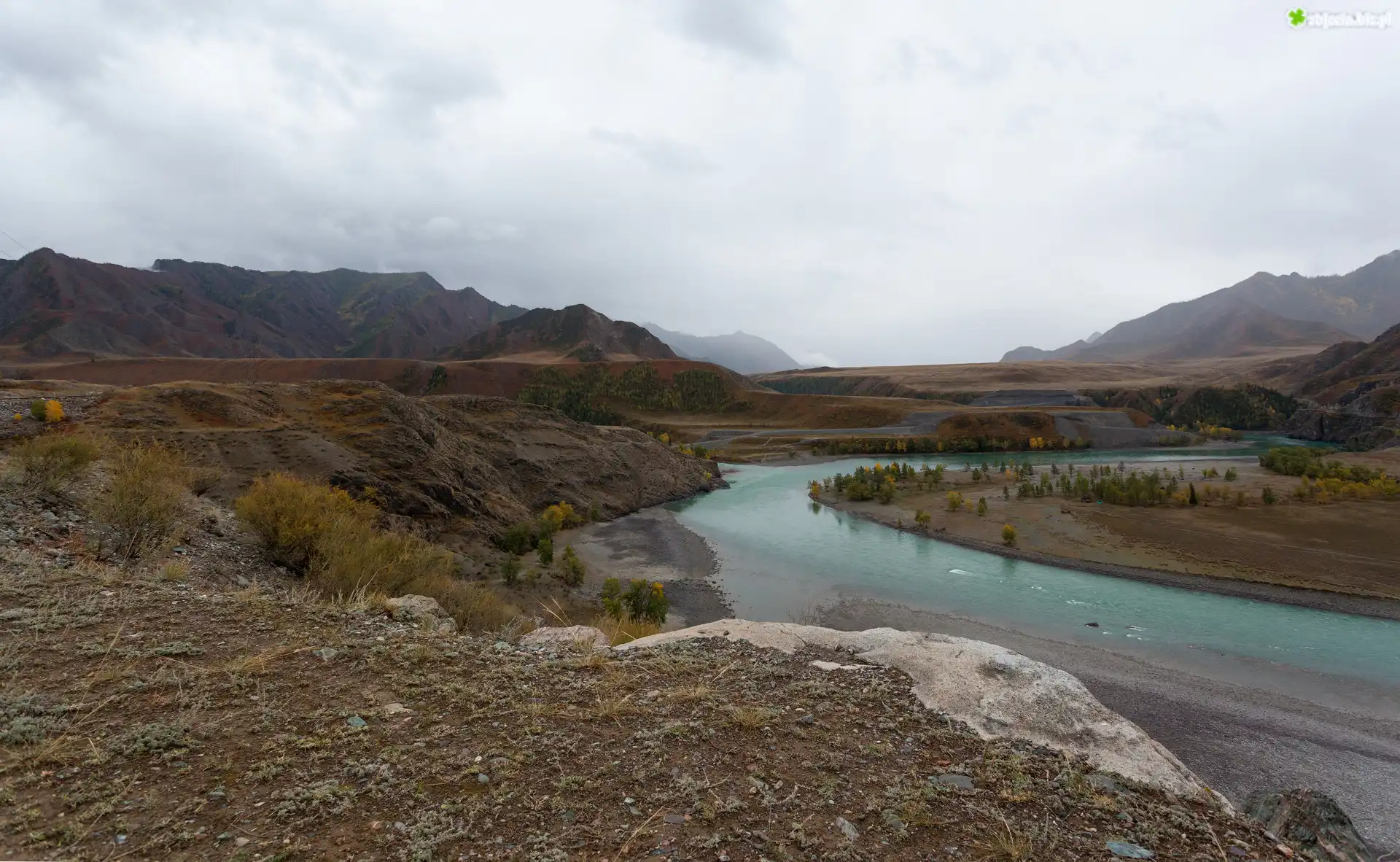 Zdjęcie, Rzeka, Góry, Wzgórza, Rośliny