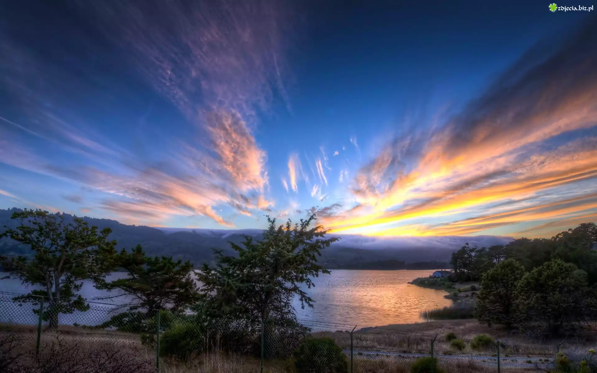 Zdjęcie, Rzeka, Las, Zachód Słońca