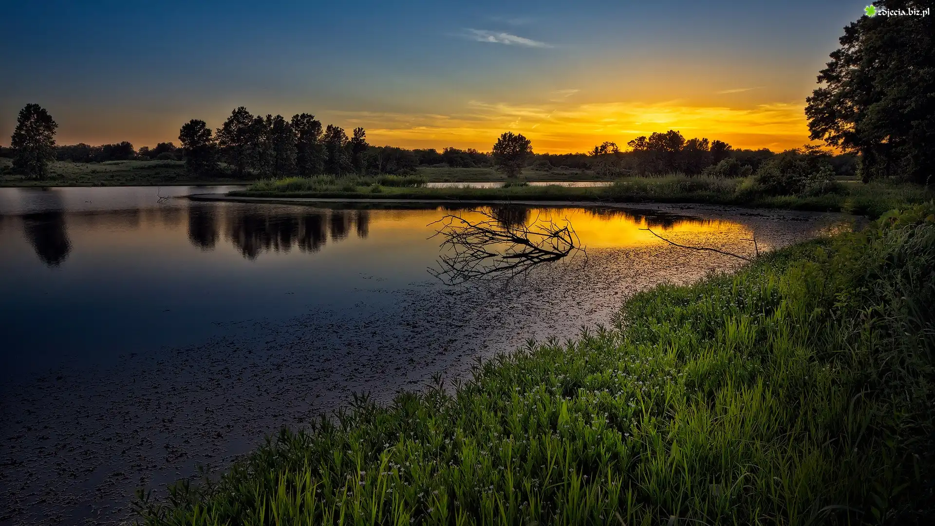 Zdjęcie Rzeka, Lasy, Zachód, Słońca