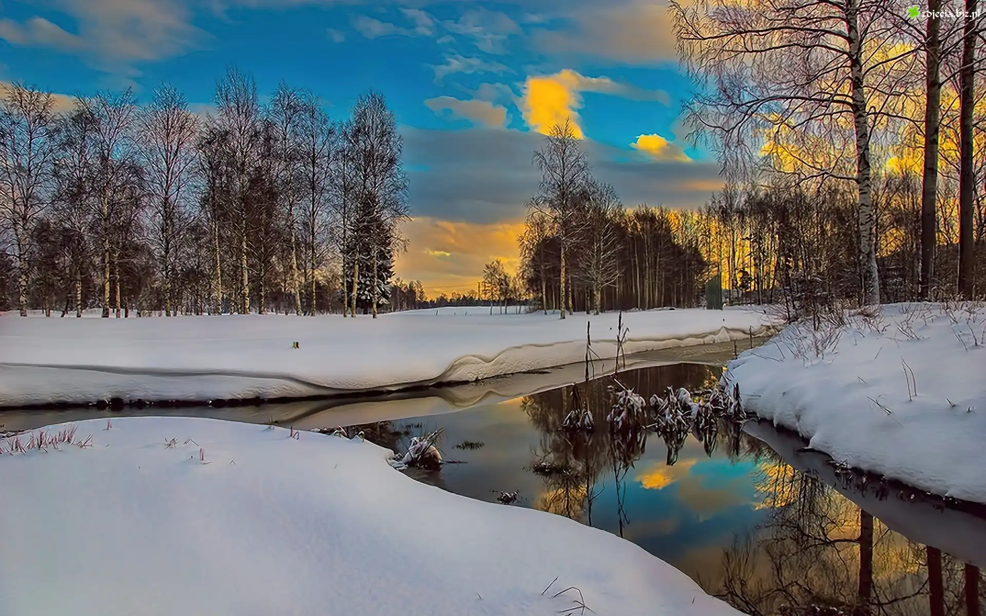 Zdjęcie Zima, Rzeka, Drzewa