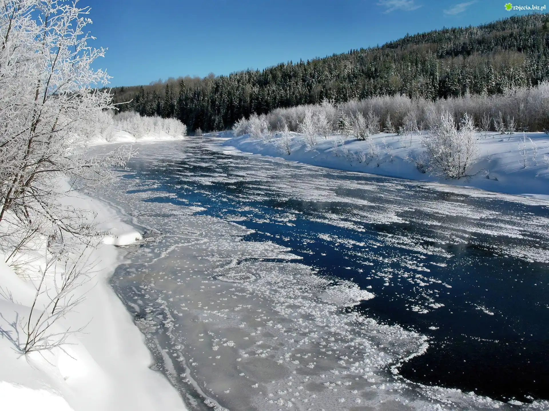 Zdjęcie Zima, Rzeka, Las