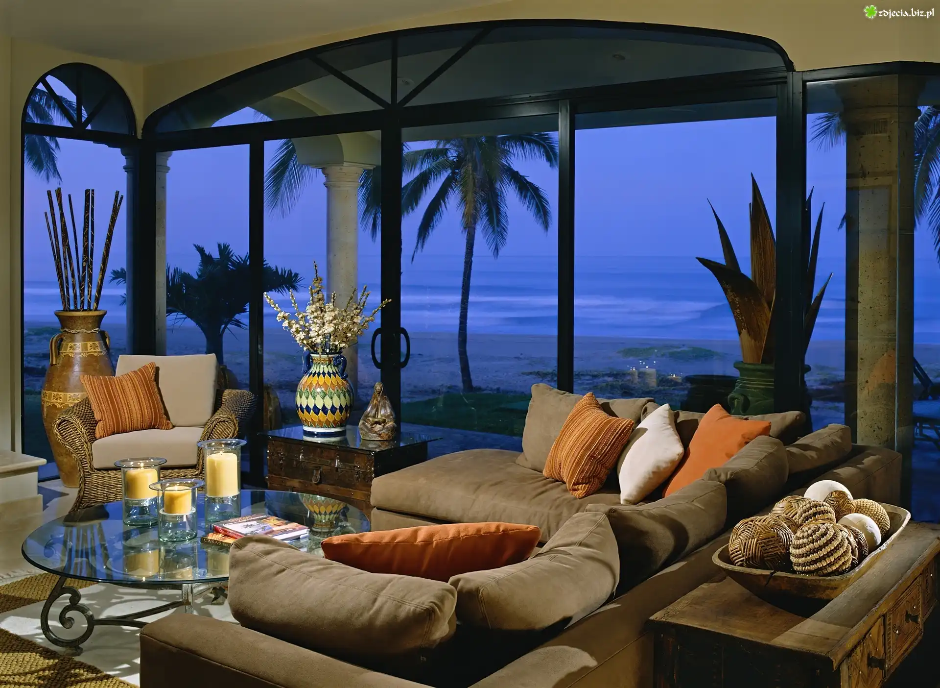 Zdjęcie Salon, Okno, Morze, Kanapa