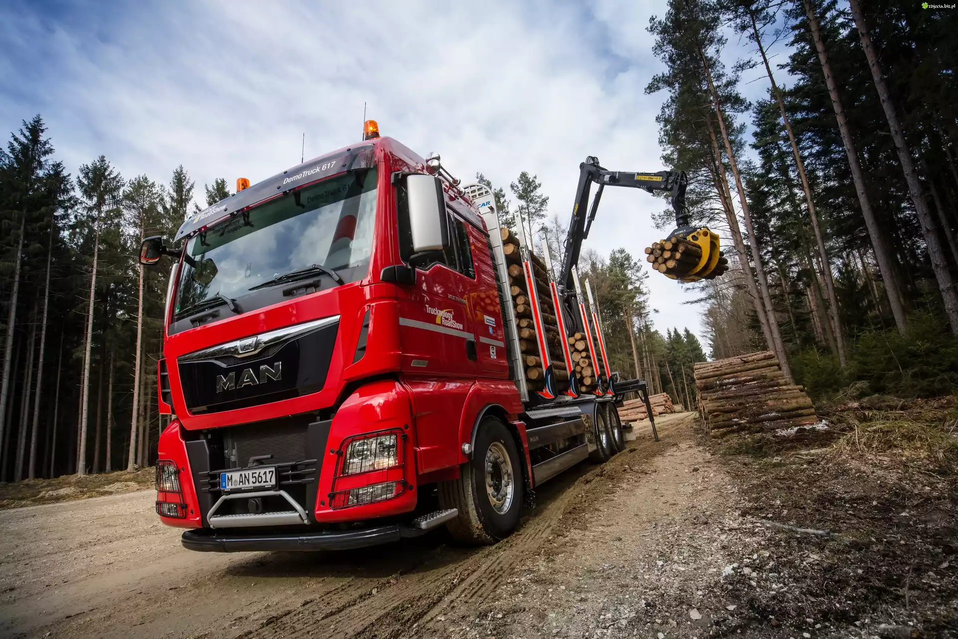 Zdjęcie Samochód, MAN, Ładunek, Drewno, Las