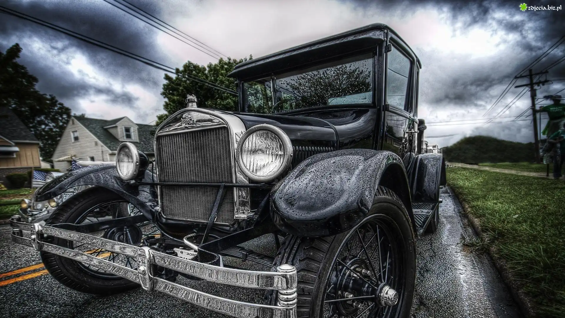 Zdjęcie Samochód, Zabytkowy, Ford, Droga, Deszcz