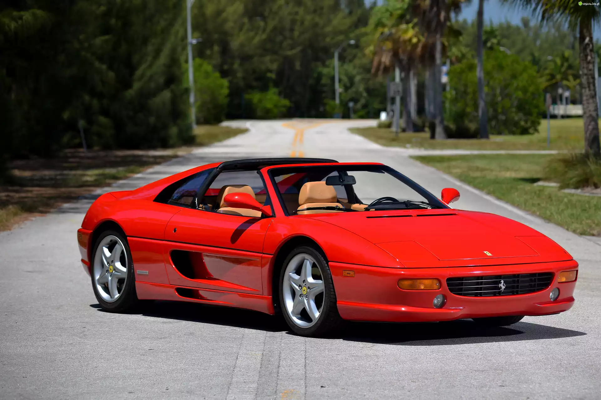 Ferrari F355 Spider Seria Fiorano Samochód, Ferrari gts f355 Ferrari 355 F1 Berlinetta, Plac, Drzewa