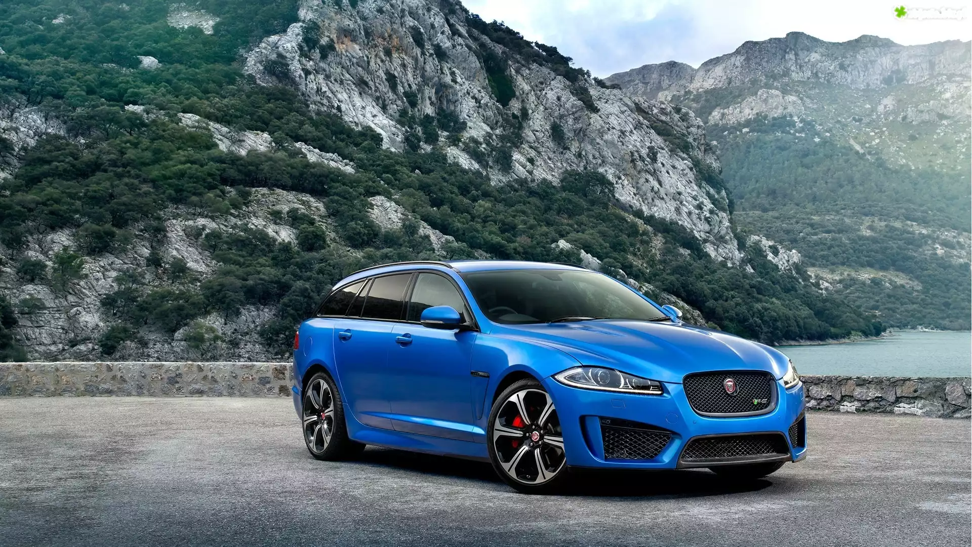 Zdjęcie, Niebieski, Samochód, Jaguar, XFR-S-Sportbrake, Góry