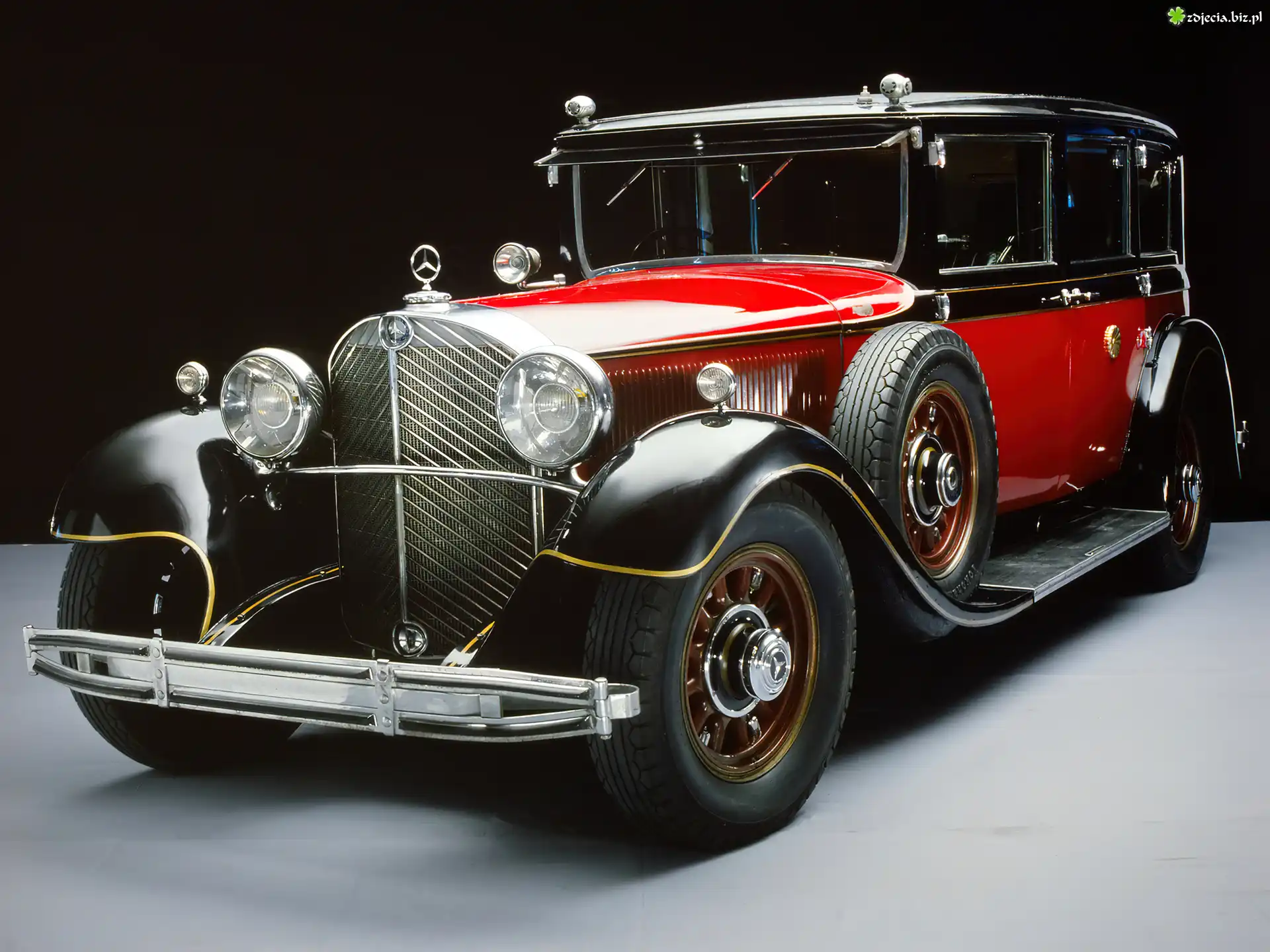 Zdjęcie, Mercedes, Samochody Zabytkowe,, czarny , znaczek , zderzak , światła