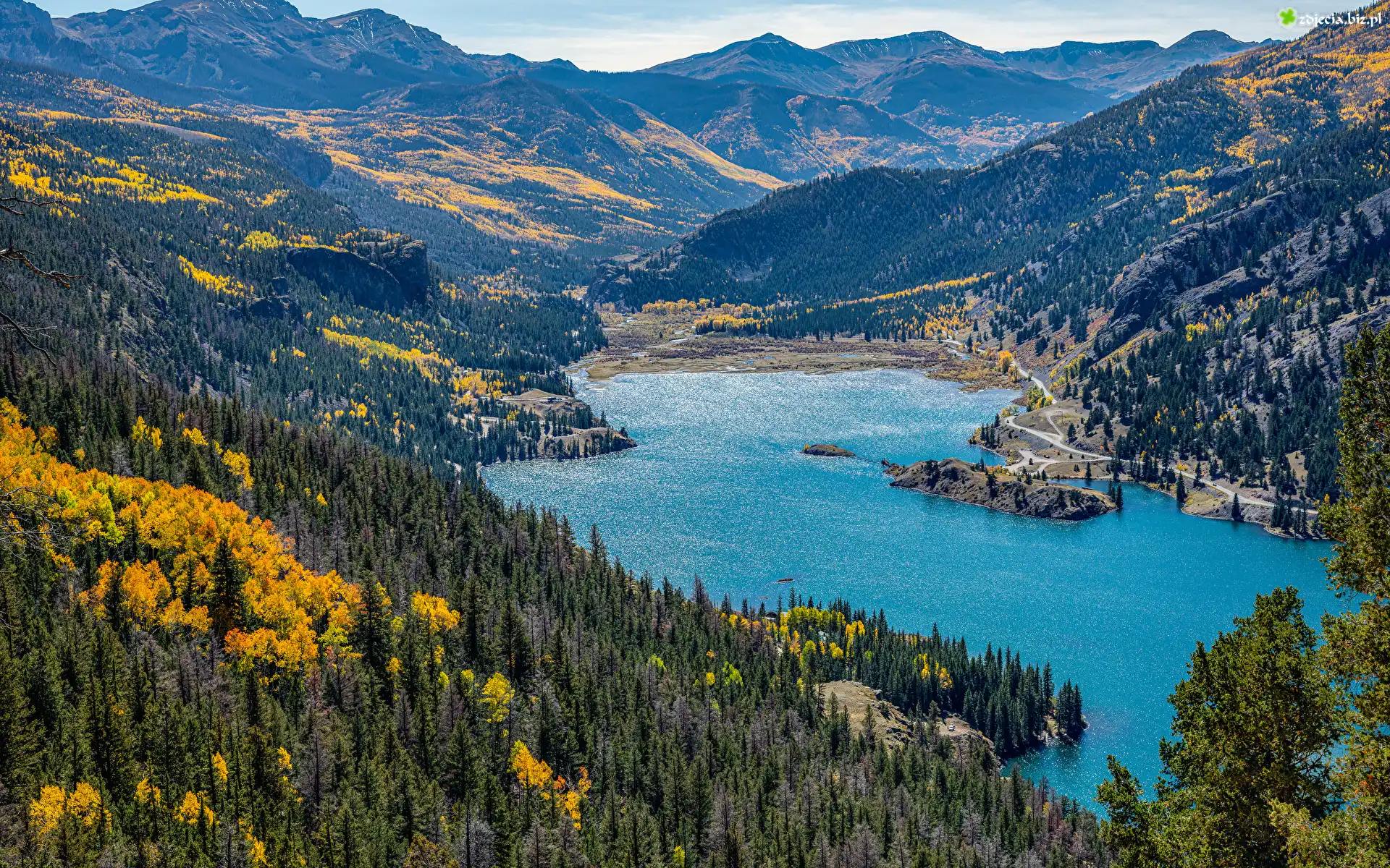Zdjęcie Jezioro, San Cristobal Lake, Góry, San Juan Mountains, Lasy, Kolorado, Stany Zjednoczone