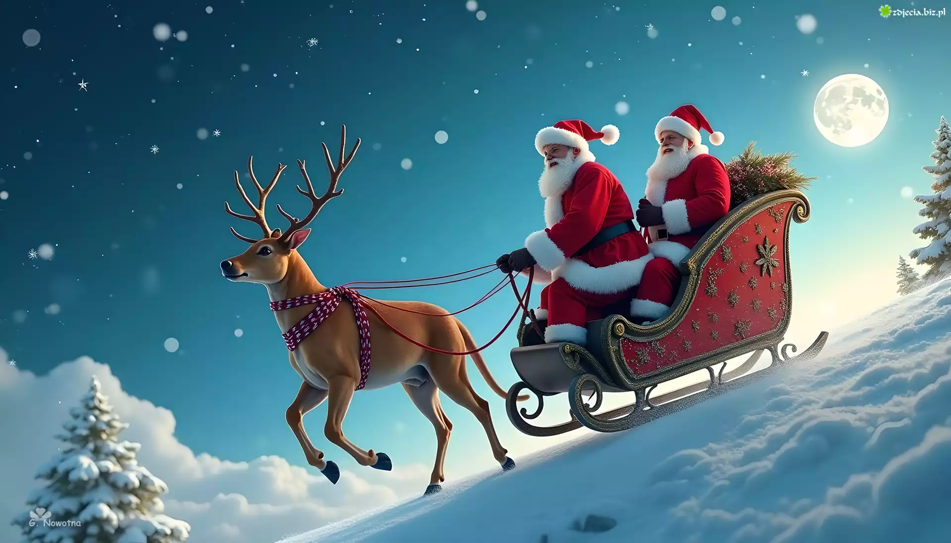 Zdjęcie Mikołaje, Sanie, Renifer, Śnieg, Grafika