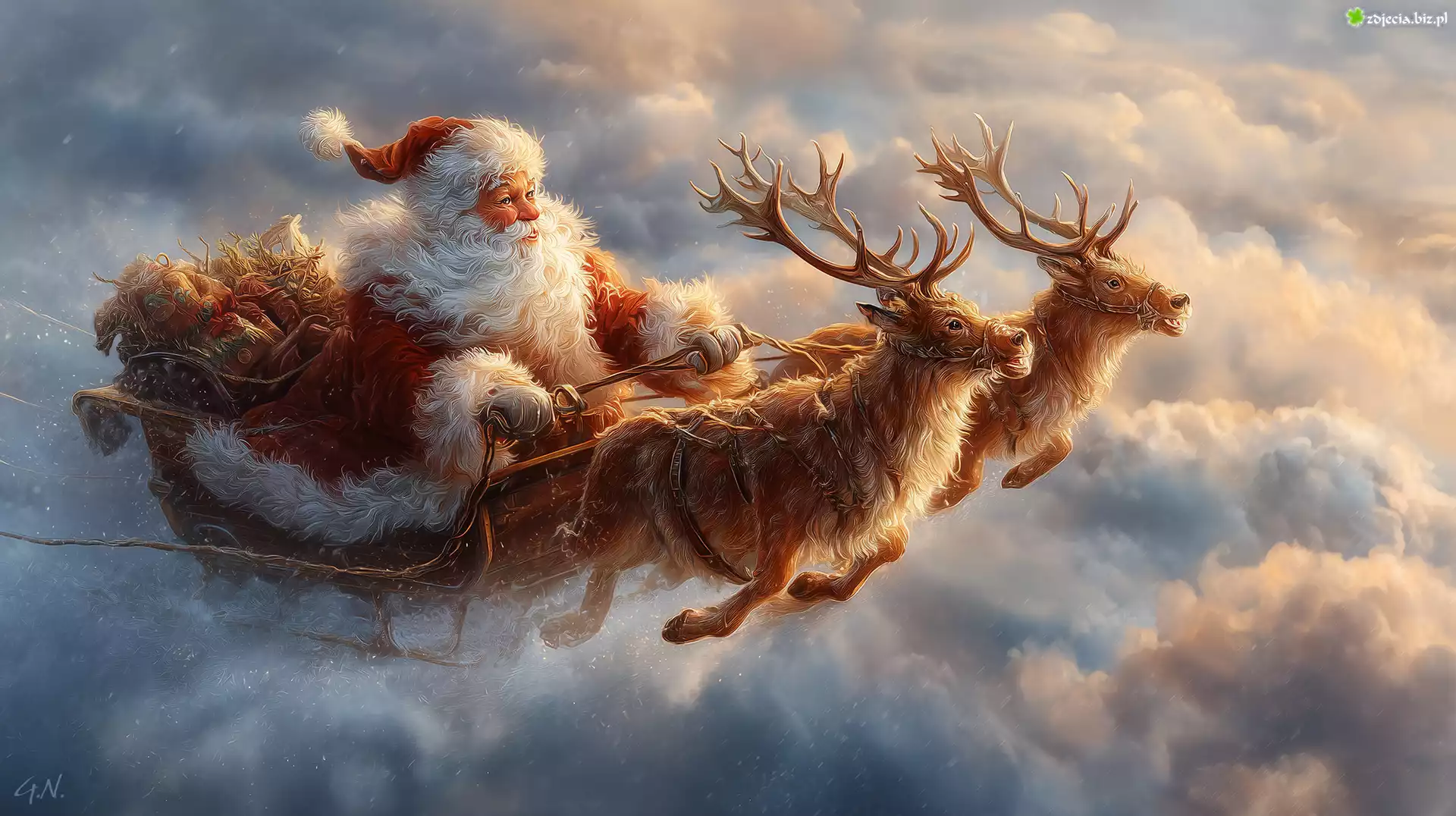 Zdjęcie Mikołaj, Sanie, Renifery, Grafika AI