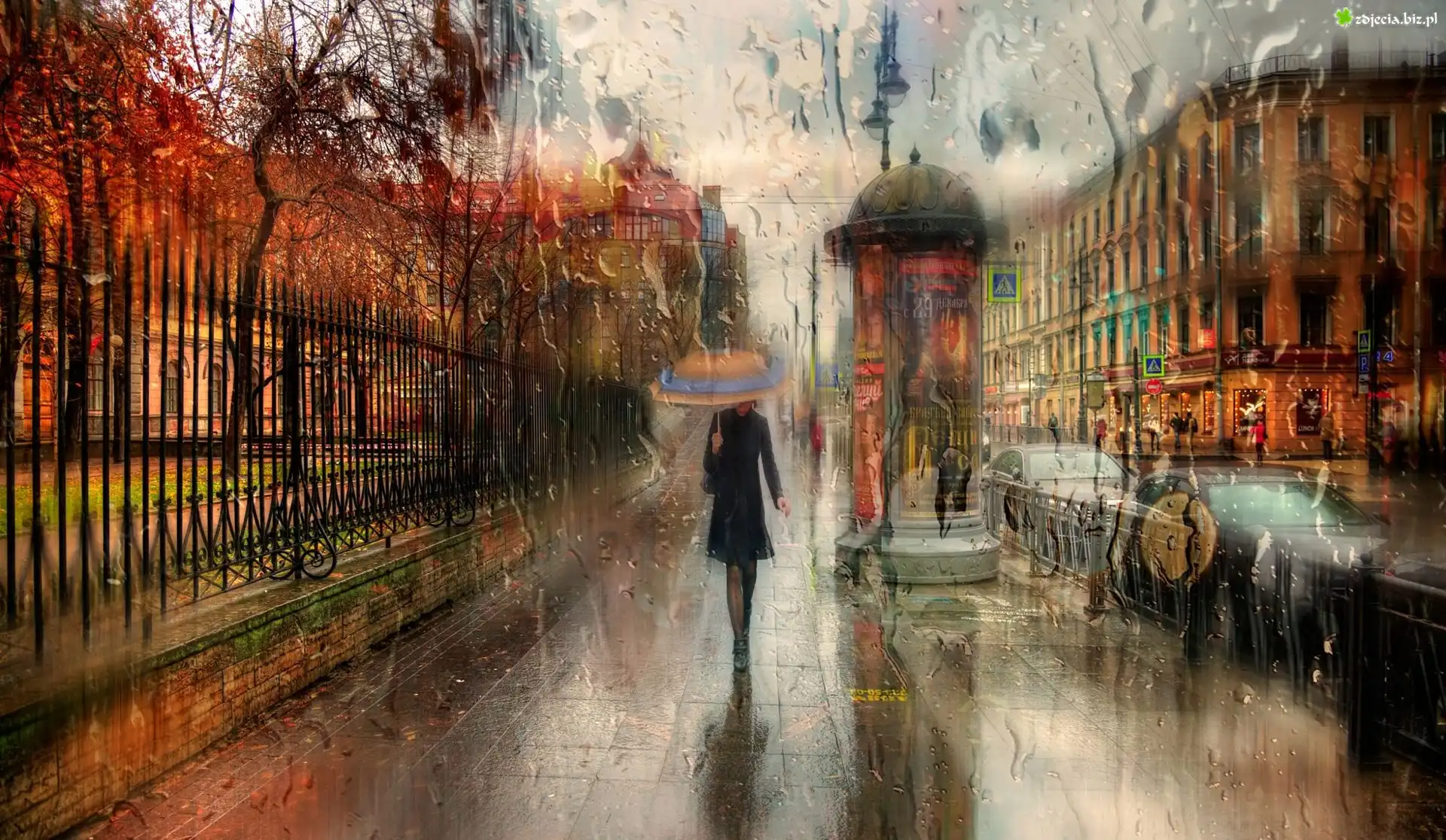 Zdjęcie Rosja, Sankt Petersburg, Deszcz, Kobieta, Parasol, Ulica