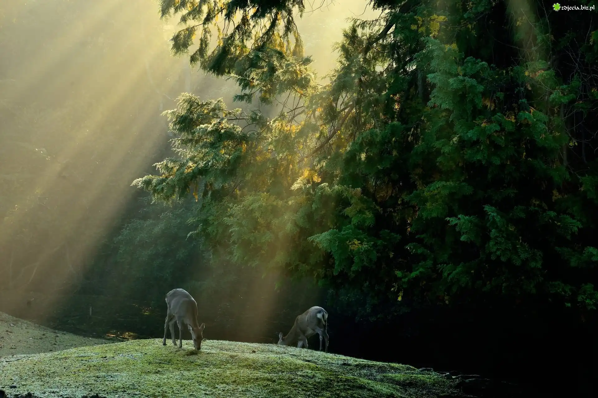 Zdjęcie, Sarenki, Las, Promienie, Słońca