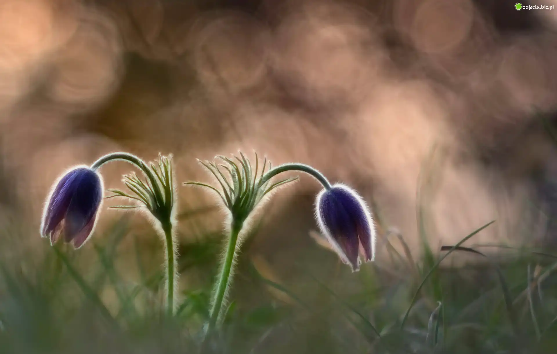 Zdjęcie, Kwiaty, Sasanki, Bokeh