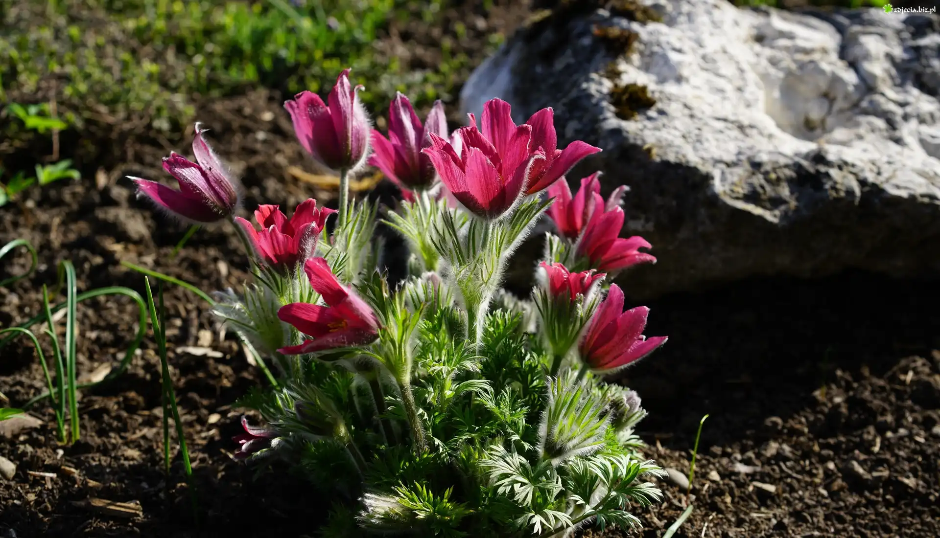 Zdjęcie, Kwiaty, Sasanki, Kamień