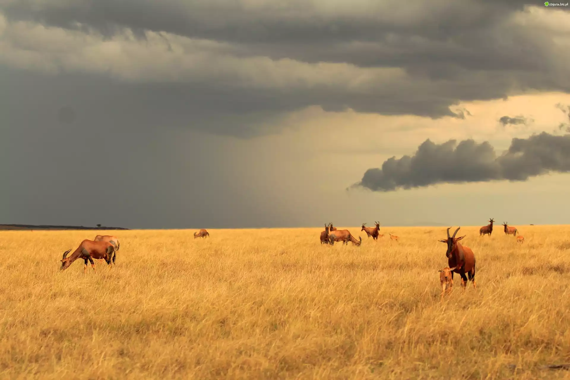 Zdjęcie, Antylopy, Sawanna, Chmury