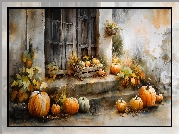 Zdjęcie Dynie, Schody, Dom, Grafika Ai