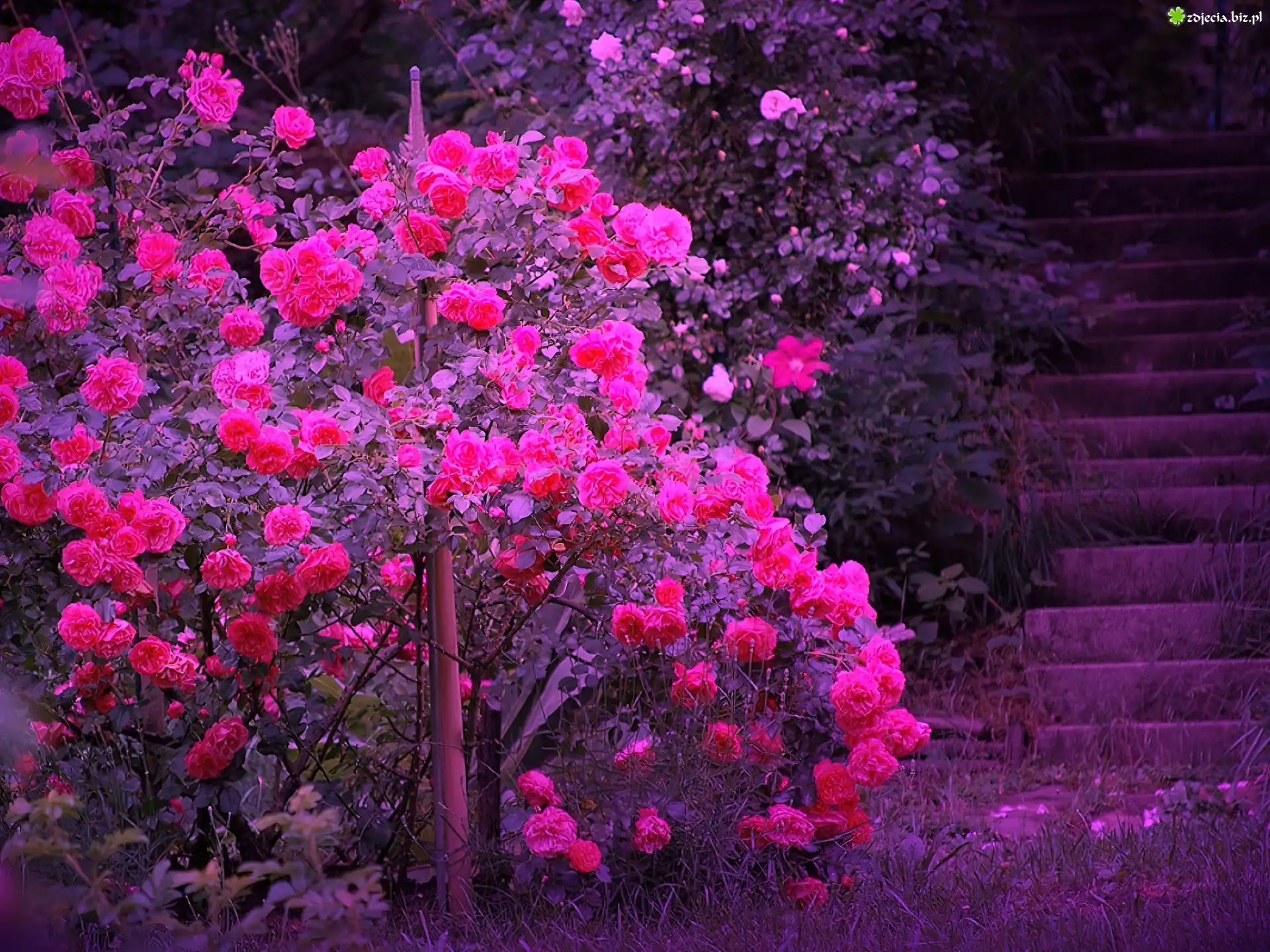 Zdjęcie Fioletowe, Schody, Kwiaty