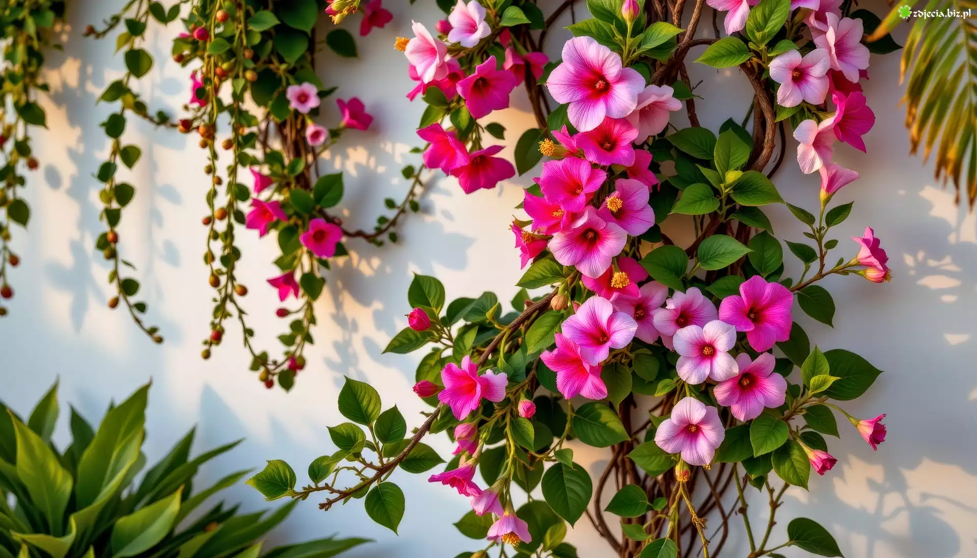 Zdjęcie Pnące, Różowe, Kwiaty, Ściana, Grafika AI