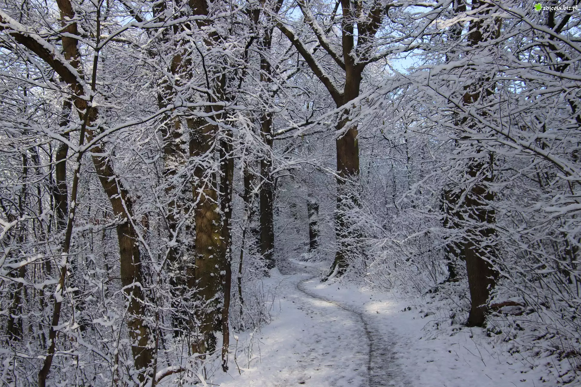 Zdjęcie Zima, Las, Drzewa, Ścieżka, Droga, Śnieg
