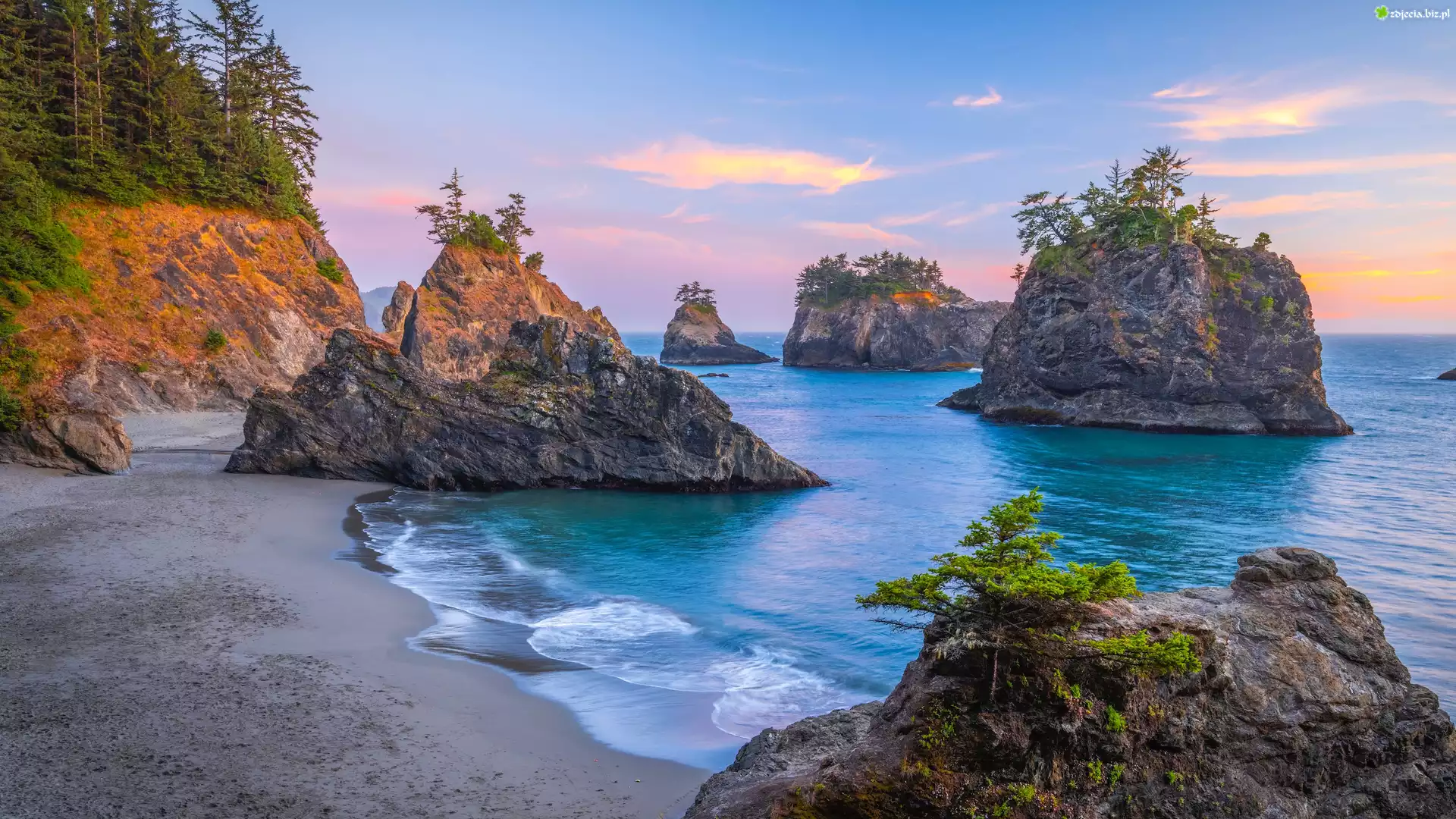 Zdjęcie Morze, Skały, Plaża, Secret Beach, Park stanowy, Samuel H Boardman, Oregon, Stany Zjednoczone |