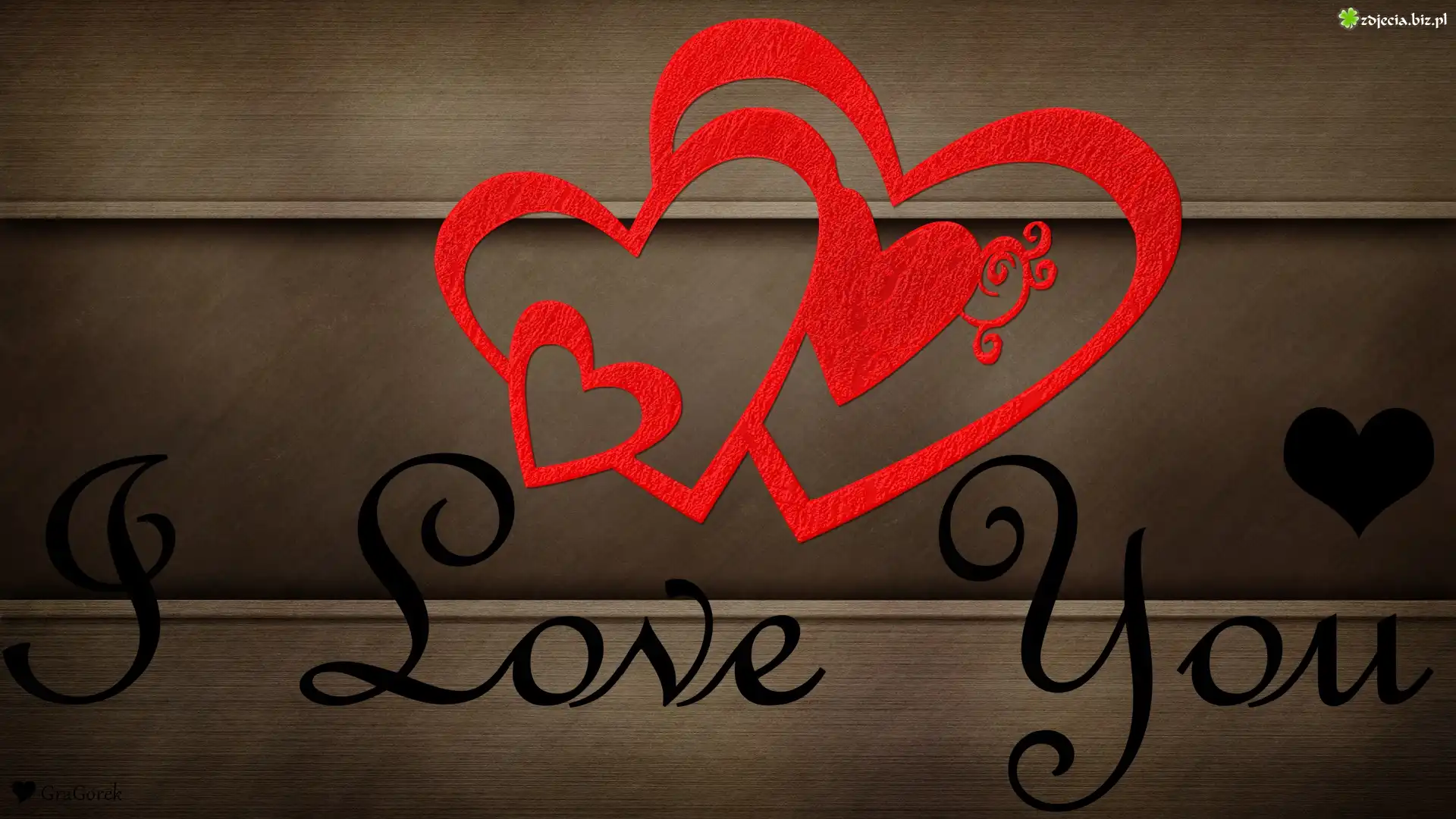 Zdjęcie Czerwone, Serca, Napis, I Love You, Deski, 2D