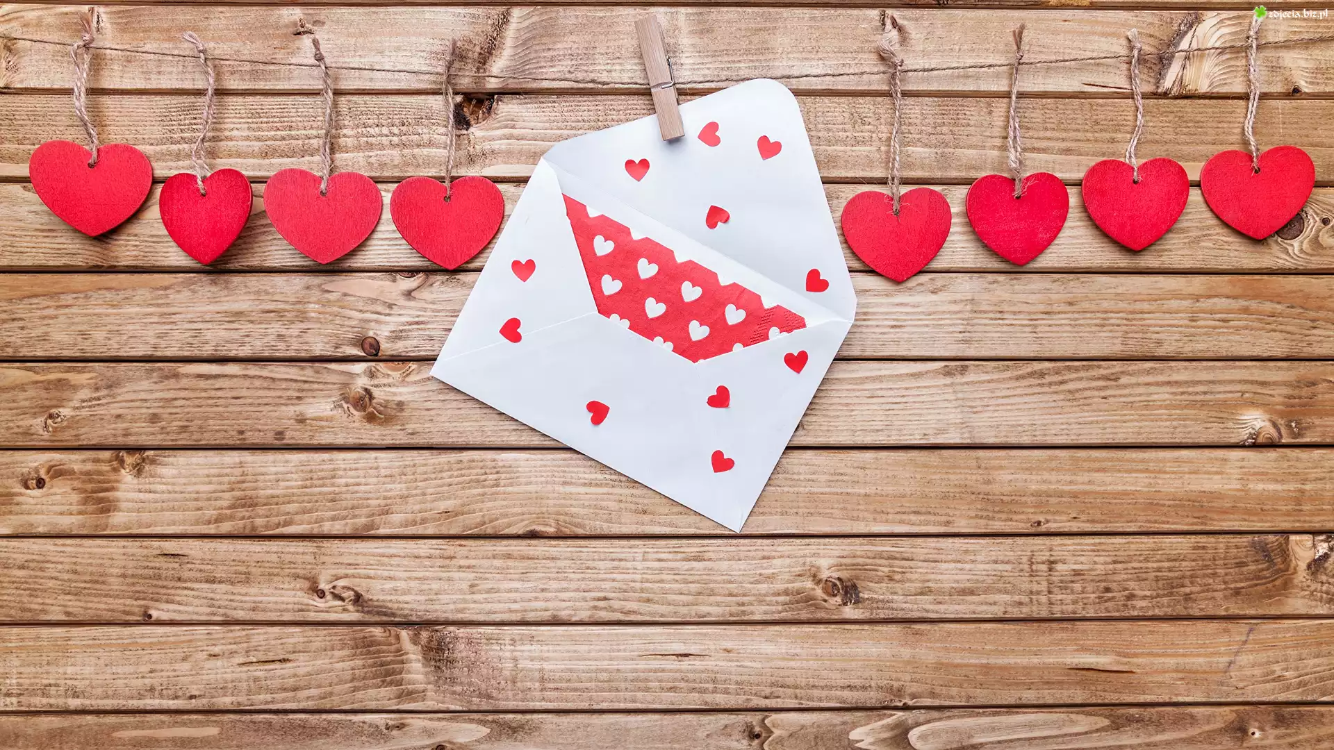 Zdjęcie Serca, Zawieszki, Sznurek, Koperta, Klamerka, Deski